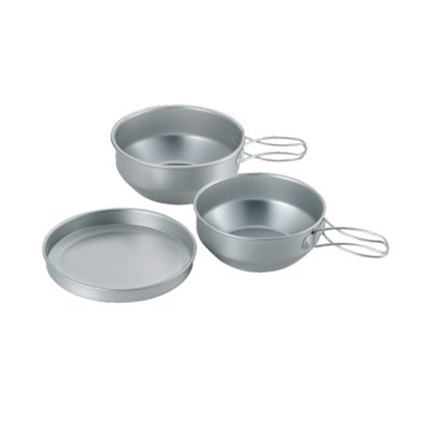 ชุดจานชามอลูมิเนียม 3 ชิ้นสำหรับพกพาขนาดเล็ก เหมาะกัยสาย soloสายเดินป่า น้ำหนักเบาพกพาใส่กระเป๋าเป๋เดินป่า หรือเหมาะกับจะเป็นชุดชามช้อนส่วนตัวในแคมป์ ในชุดประกอบ ชามขนาดกลางพร้อมด้ามจับ, ชามขนาดเเล็ก และจาน