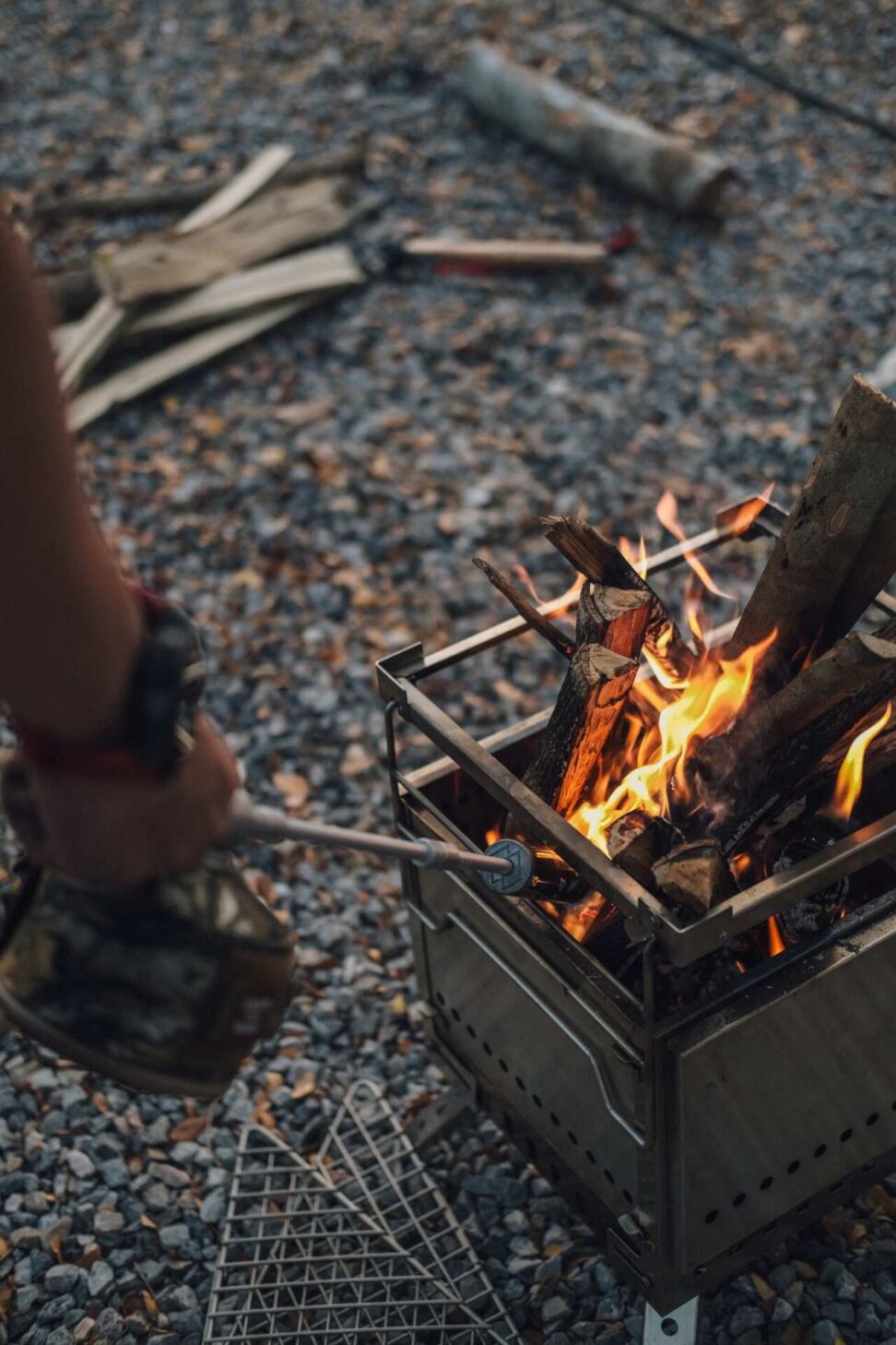 – สิ่งที่ควรทำเป็นอันดับแรกคือควรเช็คกับสถานที่ที่เราไปตั้งแคมป์ก่อนว่า สามารถให้ก่อกองไฟได้หรือไม่ ก่อไฟกับพื้นได้ไหม หรือจุดไฟได้แต่ต้องอยู่ในภาชนะก่อไฟ เช่นเตา เป็นต้น สำหรับแอด แนะนำให้ใช้เตาสำหรับก่อไฟ เพราะนอกจากจะป้องกันการลุกลามของไฟแล้ว ยังไม่ทำให้พื้นที่เสียหายอีกด้วย เตาฟืนสำหรับก่อไฟก็มีให้เลือกหลายหลากแบบหลายยี่ห้อ เช่น uniflame , petromax , minimalworks ทั้งหมดนี้หาซื้อได้ที่ Camponeoutdoor.com และยังมีอุปกรณ์แคมป์ปิ้ง อุปกรณ์เดินป่าให้เลือกอีกมากมายเลย