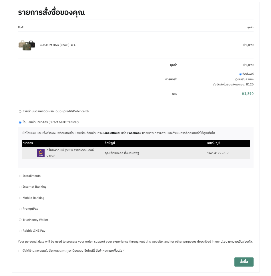 เลือกวิธีชำระเงิน ให้เรียบร้อย และกด สั่งซื้อ