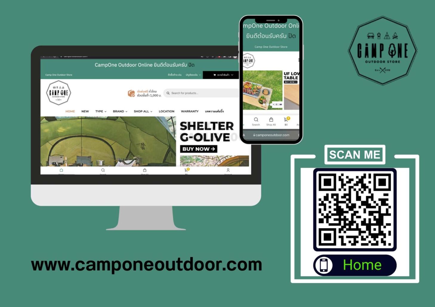 1. เข้าเว็บไซต์ www.camponeoutdoor.com จากคอมพิวเตอร์หรือมือถือ หรือ สแกน QR CODE