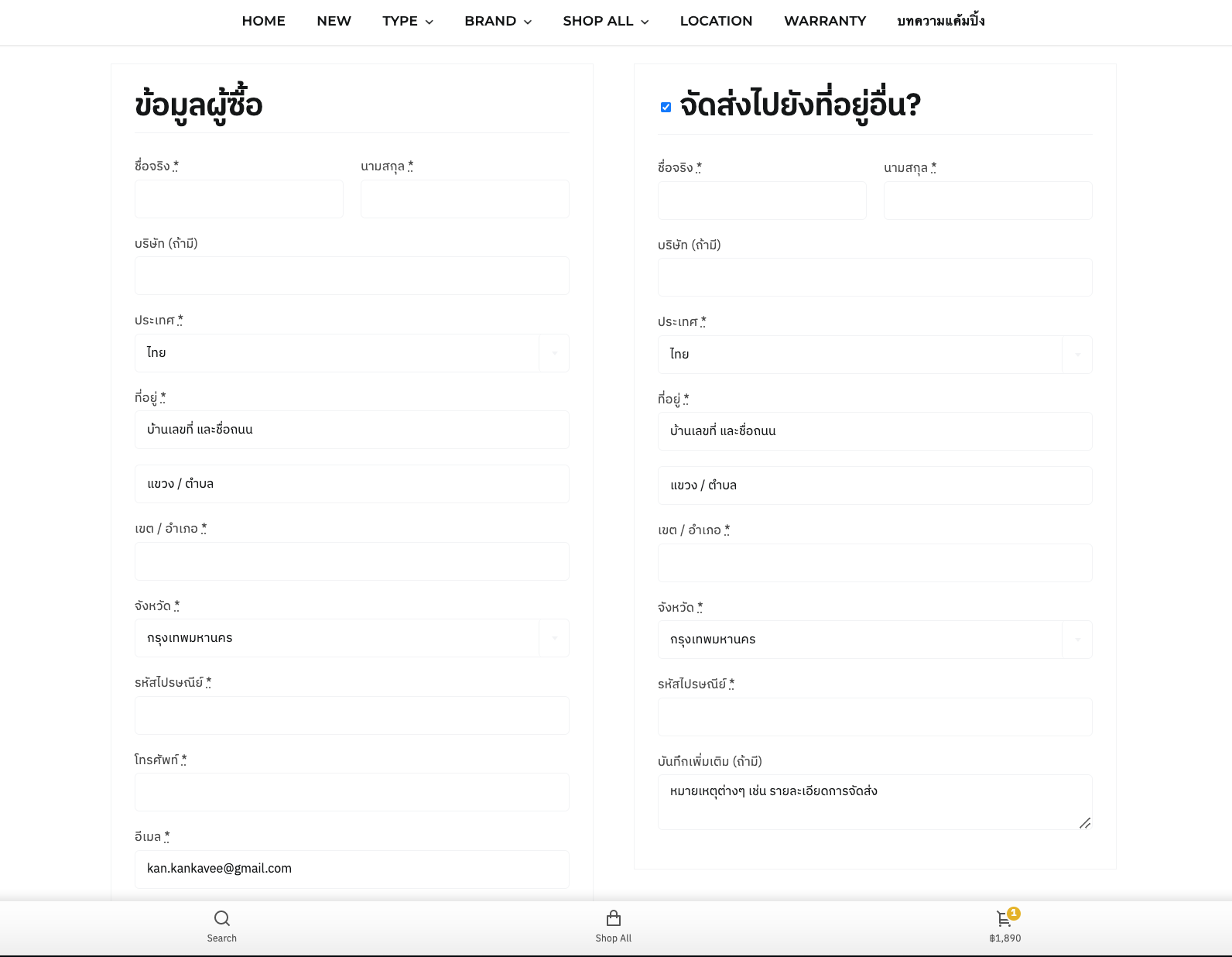 เมื่อได้สินค้าที่ต้องการครบแล้วให้กด ดำเนินการสั่งซื้อ จากนั้นกรอกชื่อที่อยู่ให้ถูกต้องเรียบร้อย