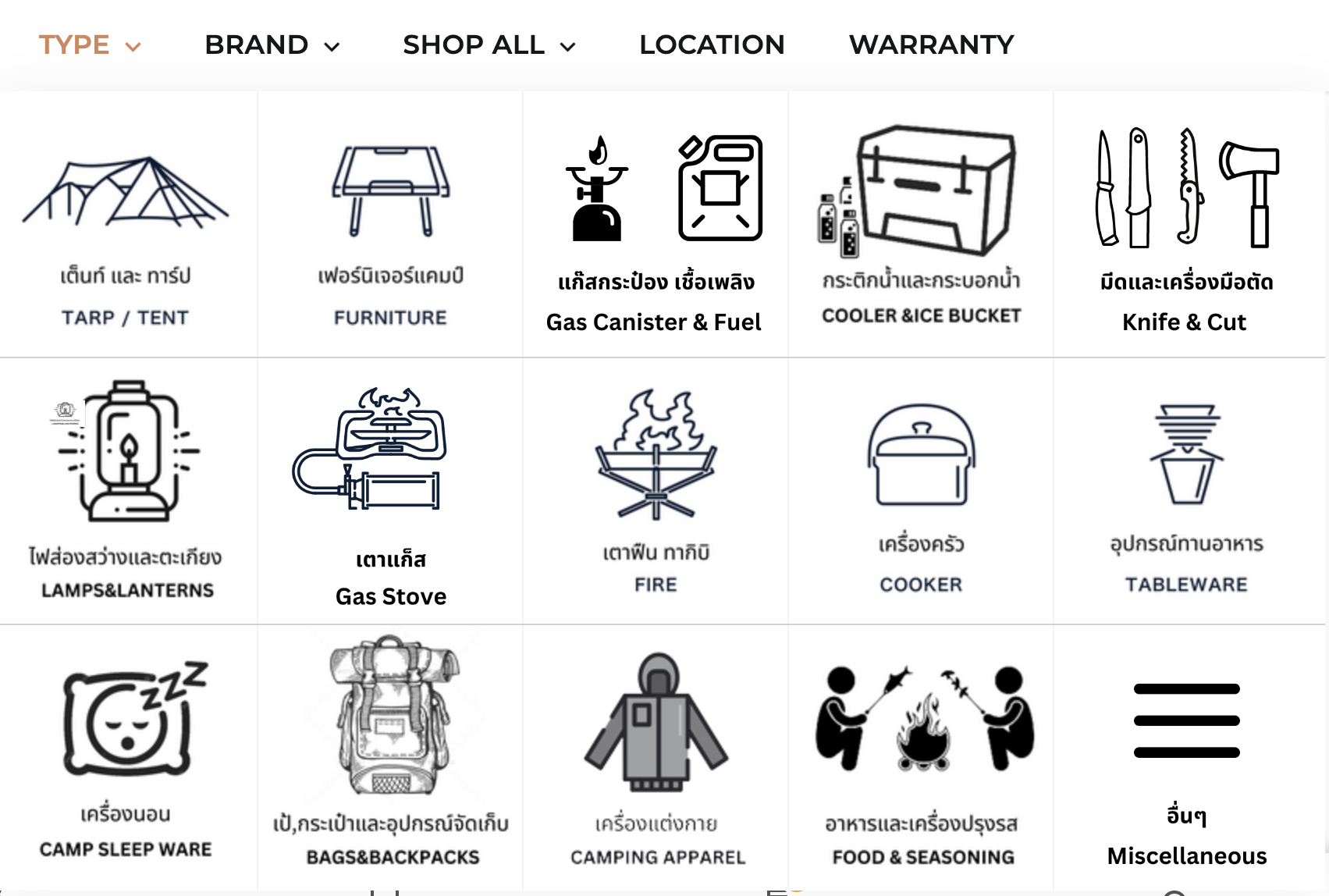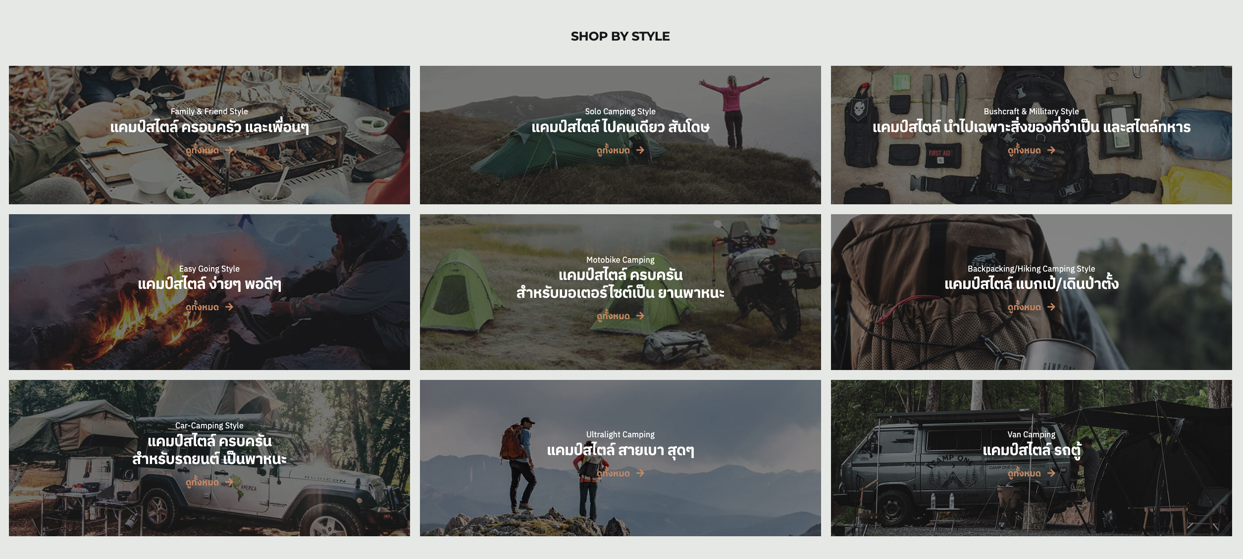 – Shop by style โดยสามารถคลิ๊กเข้าไปเลือกสินค้าตามสไตล์แคมป์ปิ้ง