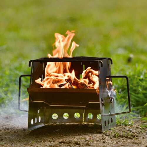 เตาฟืนสแตนเลส ขนาดเล็ก ที่จะทำให้คุณสนุกกับการทำอาหารบนกองไฟหรือถ่าน ทำจากแสตนเลส แข็งแรง ทนทาน ไม่เป็นสนิม