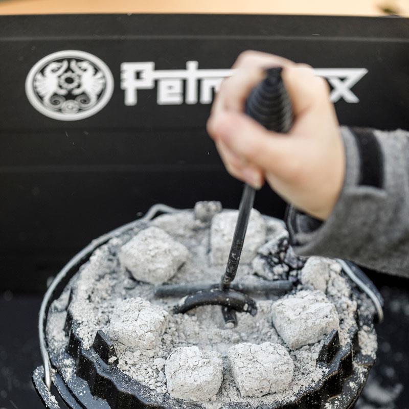 – ที่คีบถ่าน/ฟืน ไว้สำหรับคีบถ่าน/ฟืนออกจากฝาหม้อ เมื่อเสร็จแล้ว