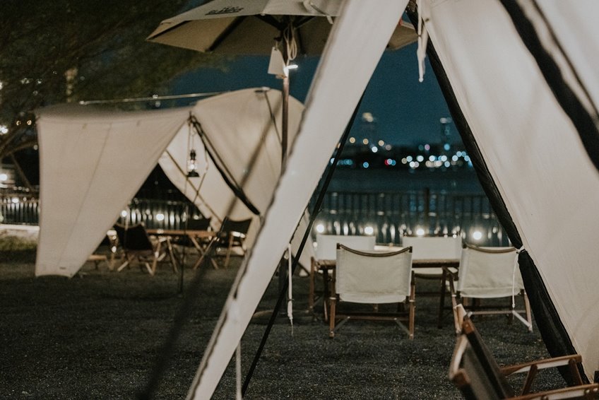 ร้านนี้จะแบ่งออกเป็น 2 โซน คือ โซน outdoor และ Indoor อยู่ติดริมน้ำเจ้าพระยา จัดตกแต่งด้วยอุปกรณ์แคมป์ปิ้ง มุมนั่งชิว มุมถ่ายรูปสไตล์แคมป์ปิ้งเพียบ เป็นอีกร้านที่ต้องไป
