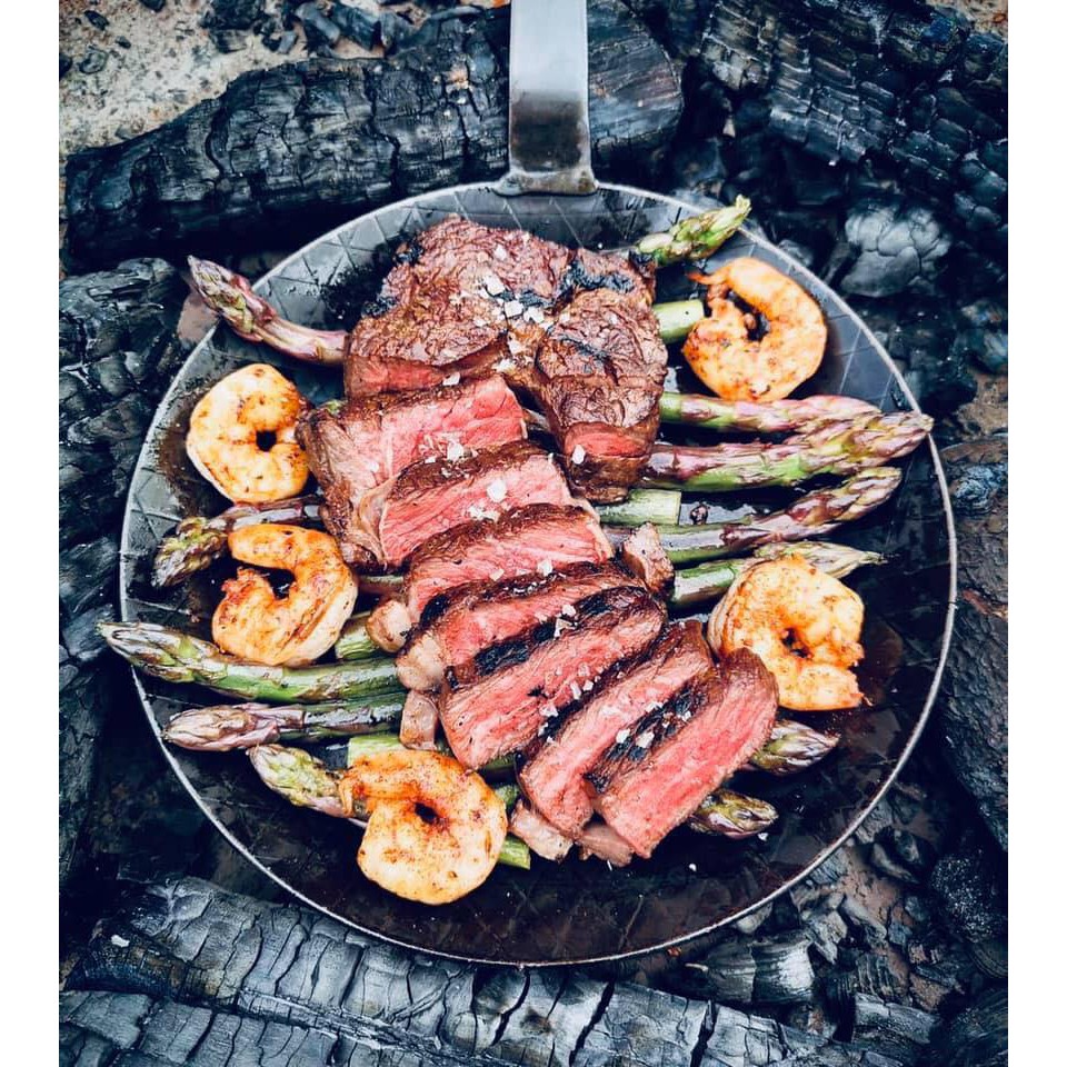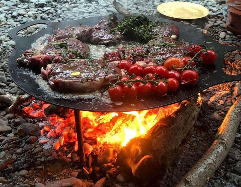 เมนูที่สาม เป็นเมนูทางฝั่งตะวันตกที่นิยมทำเป็นอย่างมากเมื่อไปกางเต็นท์แคมป์ปิ้ง ไม่ว่าจะเป็นชาวไทยหรือชาวต่างชาติ เพราะทำได้ง่าย ไม่ต้องเตรียมของอะไรให้ยุ่งยาก ถึงแม้คุณจะไปออกแคมป์ในป่าที่มีอุปกรณ์แค่น้อยชิ้นก็สามารถทำได้ง่าย ๆ นอกจากนี้ยังได้ดื่มด่ำกับรสชาติของวัตถุดิบ หรือสำหรับบ้านไหนที่ชอบรับประทานเนื้อนุ่มๆ หมักซอสฉ่ำๆ ก็สามารถที่จะหมักเนื้อและแพ็คใส่กล่องไปจากที่บ้านได้ อาจเสิร์ฟคู่กับผักที่ย่างในน้ำมันของเนื้อได้เป็นผักย่างที่ชุ่มฉ่ำไปด้วยรสของเนื้อที่อยู่ภายใน