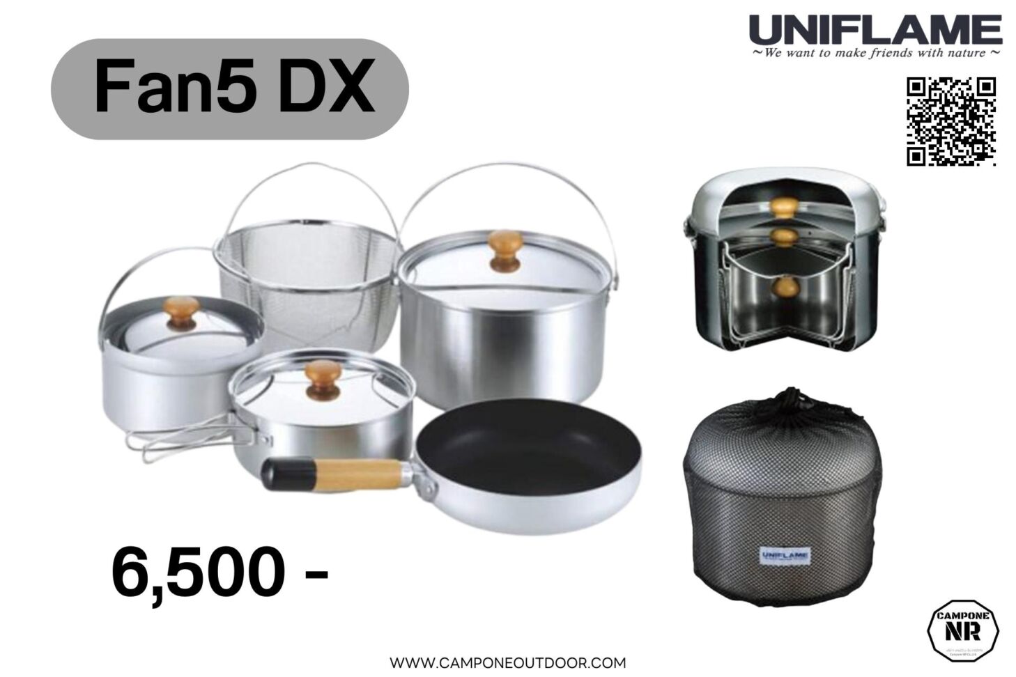 ชุดทำอาหารที่ดีที่สุดของ Uniflame จากประเทศญี่ปุ่น ที่ผลิตต่อเนื่องมานานกว่า 30 ปี เหมาะสำหรับแคมป์คาร์ ขนาดใช้งานสำหรับครอบครัว ประมาณ 2-5 คน สามารถเก็บวางซ้อนกันเป็นชุดเดียวได้พกพาสะดวก ในชุดประกอบด้วย