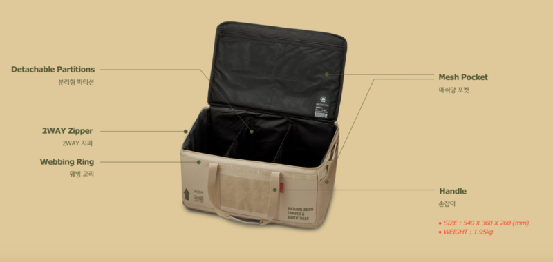 Custom Bag เป็นกระเป๋าเก็บของจากแบรนด์ Cargo Container มี 2 Size M , L ขนาด 19L และ ขนาด 52L มีให้เลือกถึง 3สี Black , Khaki , Beige ที่ปรับแต่งมาเพื่อจัดเก็บอุปกรณ์ตั้งแคมป์ต่างๆ เช่น ถุงนอน อุปกรณ์ทำอาหาร เก้าอี้ หรือตะเกียง ตามขนาด Size