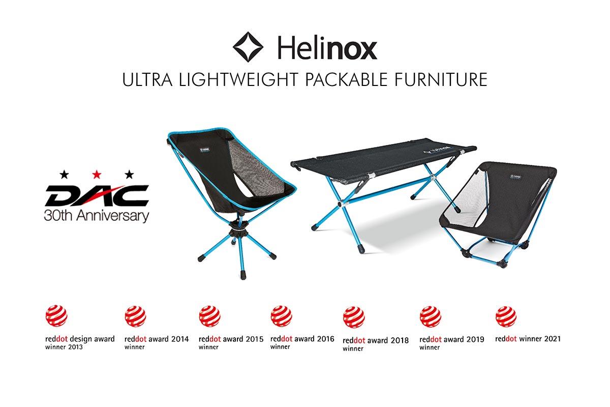 Helinox ภูมิใจที่ได้สร้างหมวดหมู่ใหม่ของเฟอร์นิเจอร์พกพาน้ำหนักเบาจากความรู้ด้านเทคนิคขั้นสูง หลอมรวมงานฝีมือ การออกแบบ และวัสดุระดับพรีเมียม พัฒนาจนเป็นผลิตภัณฑ์ที่ได้รับรางวัลมากมาย คุณจะรู้สึกถึงความแตกต่างในด้านความสะดวกสบาย ความทนทาน และการพกพา