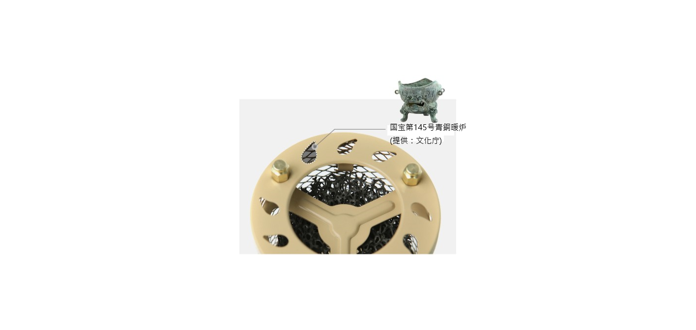 เครื่องทำความร้อน Etna ใช้วิธีการทำความร้อนด้วยโฟมโลหะ โฟมโลหะกักเก็บความร้อน ปล่อยแสงอ่อนโยนและความร้อนอันทรงพลังตาข่าย ป้องกันตาข่ายที่หุ้มโฟมโลหะทำจากวัสดุสแตนเลสทนทานสูง มีโอกาสเกิดการกัดกร่อนและรอยขีดข่วนน้อยกว่า จากช่องว่างระหว่างโครงโลหะกับตาข่าย กระจายแสงและความอบอุ่น รู้สึกถึงมันได้ใกล้ชิดยิ่งขึ้น
