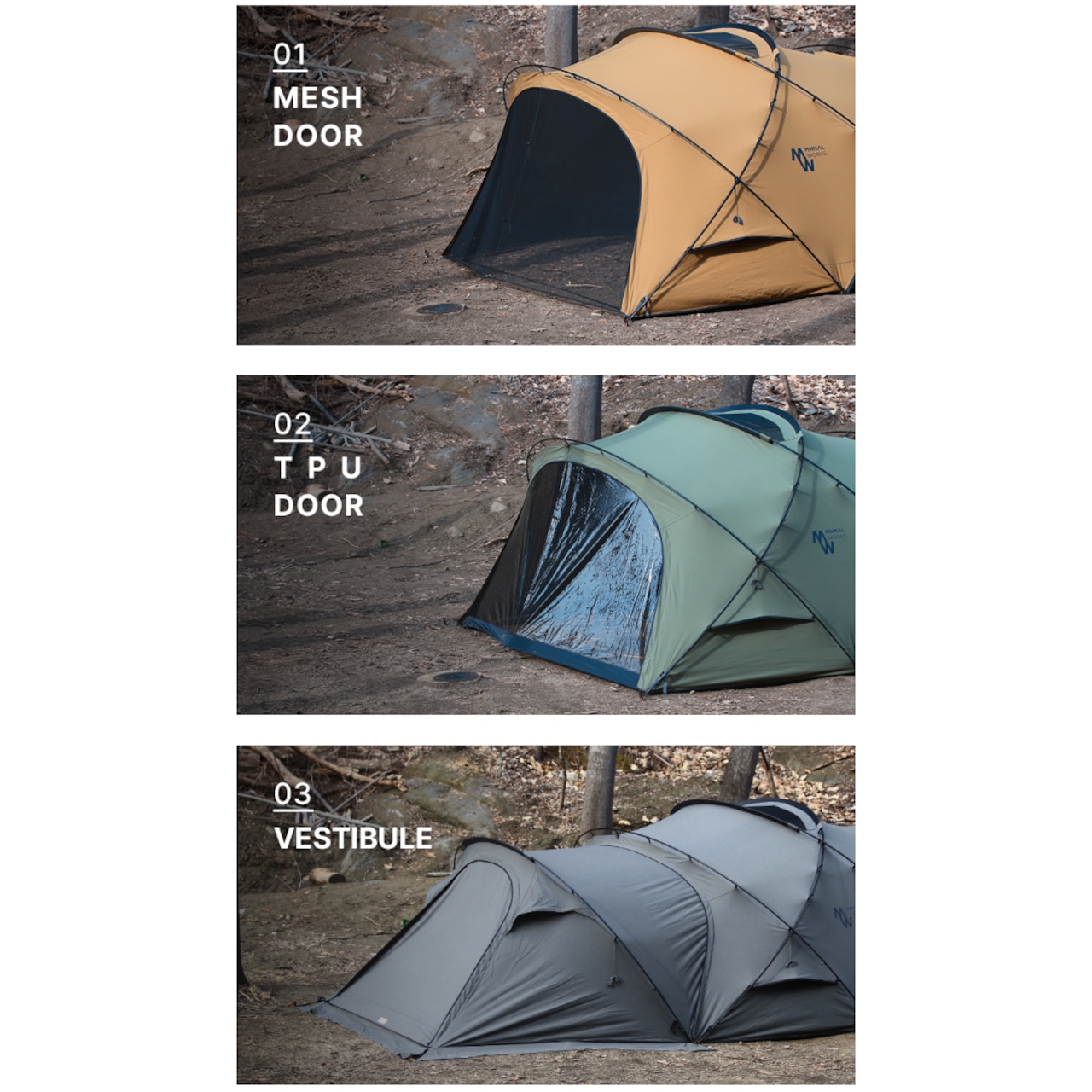ใช้โครงสร้างเสาไขว้คู่ ใช้เสาหลัก 2 เสาและเสาด้านข้าง 2 เสา ที่ทำจากวัสดุดูราลูมิน สามารถติดตั้งได้ง่าย ช่องระบายอากาศ 4 จุดเพื่อการไหลเวียนของอากาศที่ราบรื่น มีระบบระบายอากาศป้องกันการควบแน่นและการไหลเวียนของอากาศได้อย่างมีประสิทธิภาพ