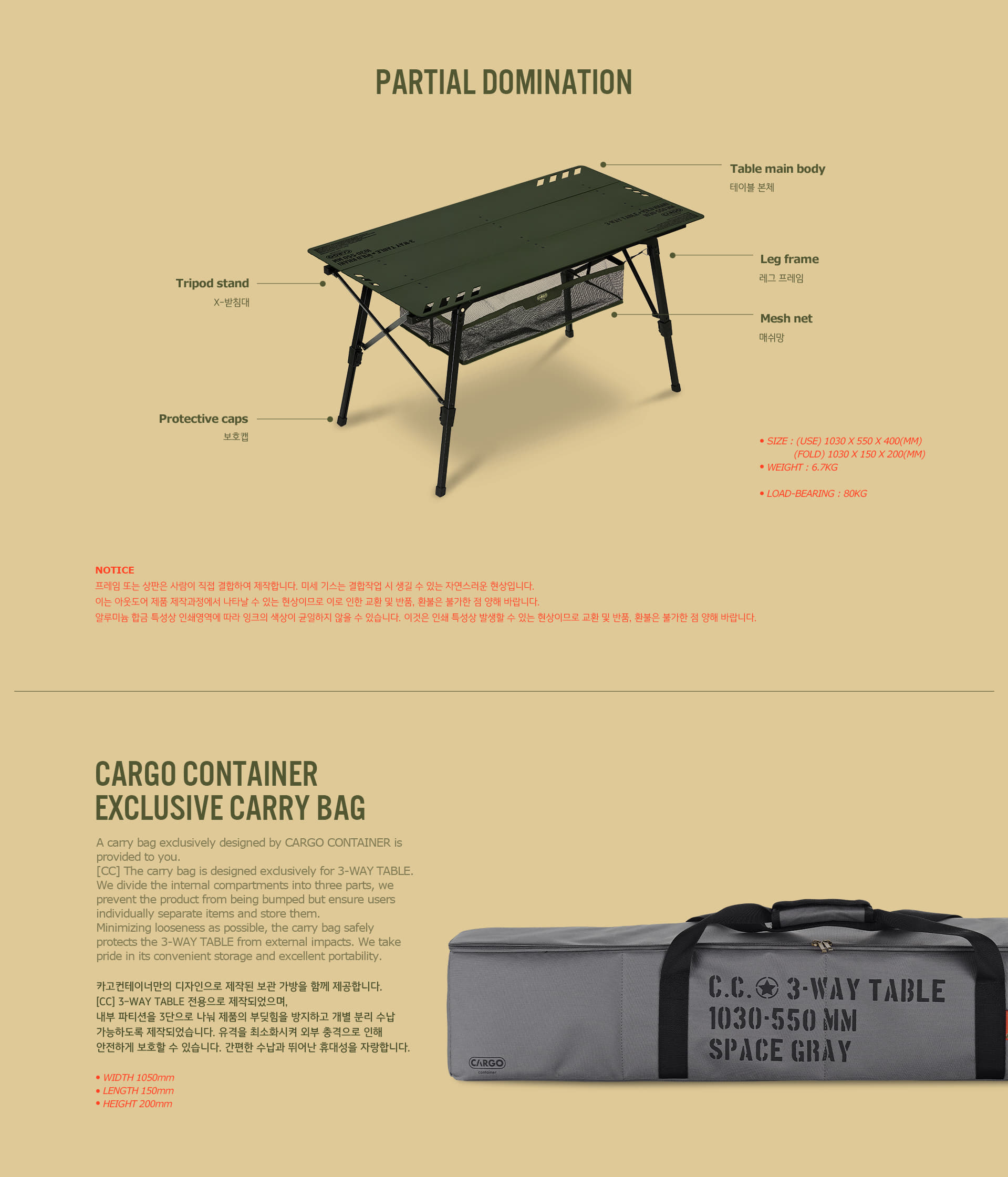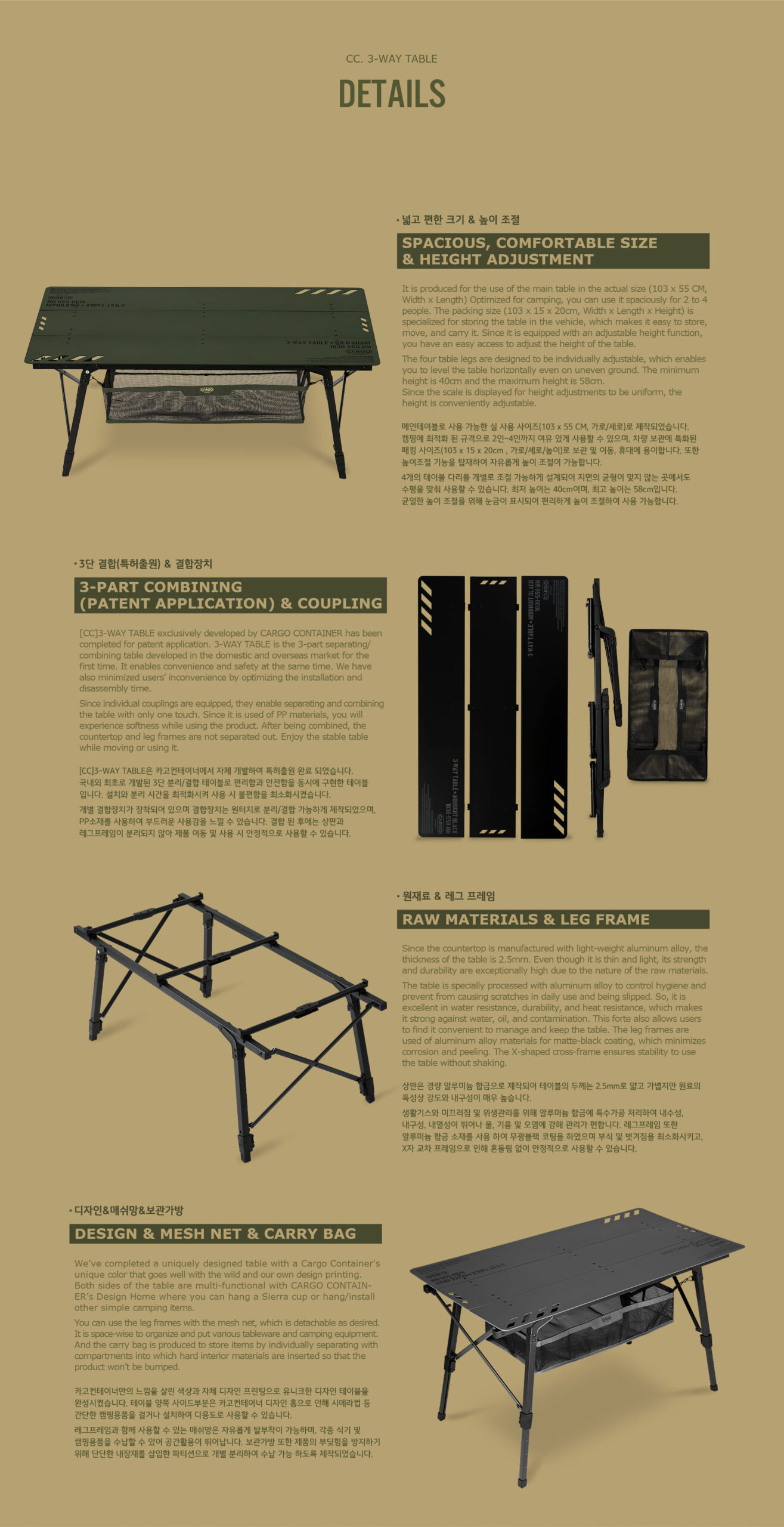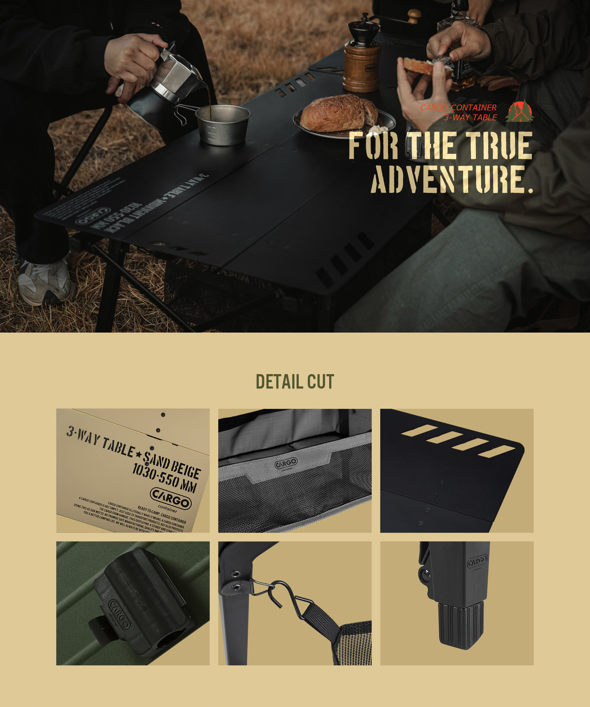 รายละเอียด : 3 Way Table โต๊ะแคมป์ปิ้งขนาดใหญ่ ที่รองรับได้หลายคน สามารถใช้เป็นโต๊ะทานอาหารหรืออื่น ๆ ตามต้องการ ข้อต่อยึดแน่น แข็งแรงทนทาน เคลื่อนย้ายได้อย่างปลอดภัยเมื่อยกโต๊ะ รับน้ำหนักได้ถึง 80 กิโลกรัม ขาโต๊ะทั้งสี่ออกแบบมาให้ปรับได้เอง สามารถปรับระดับและใช้งานได้แม้ในที่ที่พื้นไม่สมดุล และยังปรับระดับความสูงต่ำได้ตั้งแต่ 40 – 58 ซม. ตัวโต๊ะสามารถพับเก็บได้ มาพร้อมกระเป๋าสำหรับจัดเก็บอย่างดี