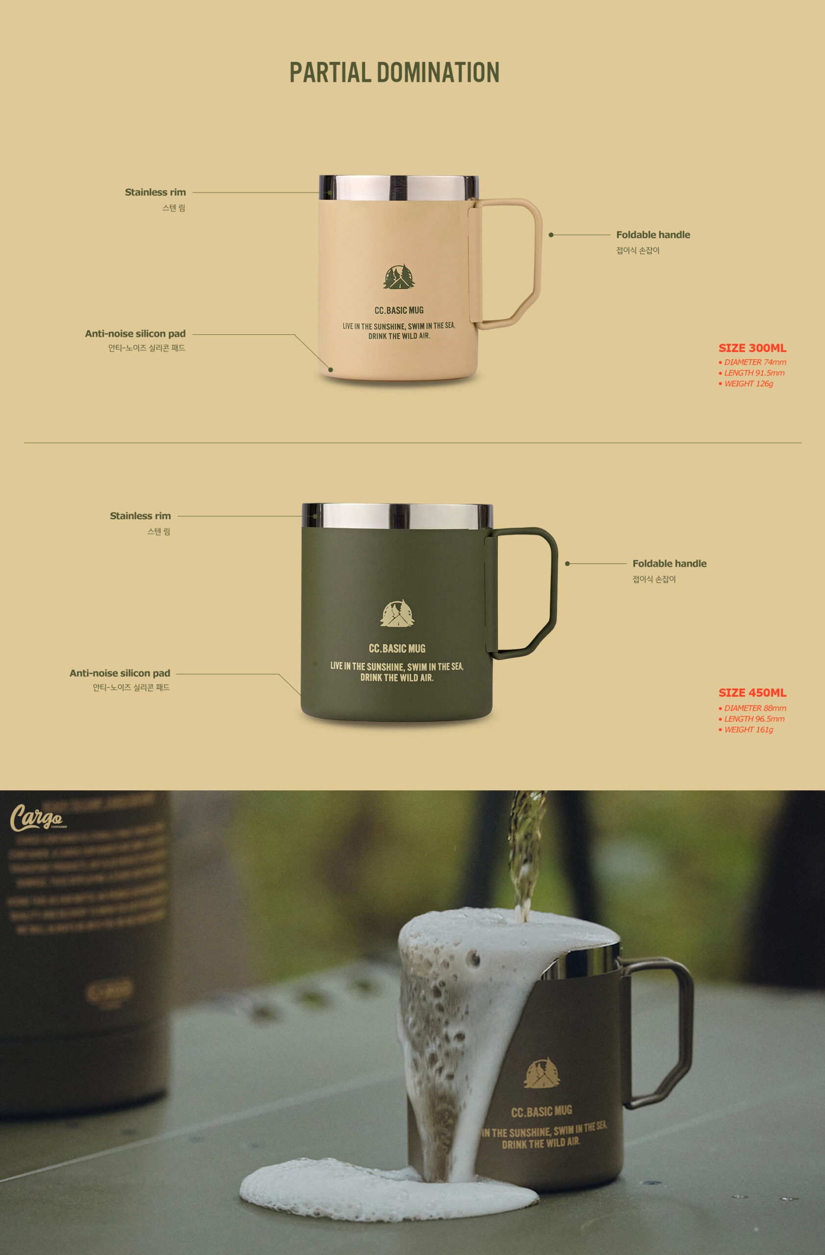 รายละเอียด : CARGO CONTAINER BASIC MUG แก้วสเตนเลสสตีลคุณภาพสูงที่ออกแบบมาเพื่อการใช้งานทั้งกลางแจ้งและในชีวิตประจำวัน มีให้เลือก 2 ขนาด คือ 300 มล. และ 450 มล. โดดเด่นด้วยความทนทาน ปราศจากสาร BPA และรักษาอุณหภูมิได้ดีด้วยโครงสร้างผนัง 2 ชั้น ดีไซน์ทันสมัยด้วย 4 สีสันเอกลักษณ์ พร้อมด้ามจับพับได้และฐานซิลิโคนกันลื่น สามารถซ้อนกันได้เพื่อประหยัดพื้นที่ ทำความสะอาดง่าย และเป็นมิตรต่อสิ่งแวดล้อม เหมาะสำหรับผู้ที่ชื่นชอบการผจญภัยและต้องการแก้วคุณภาพดีสำหรับใช้ในทุกโอกาส ไม่ว่าจะเป็นการตั้งแคมป์ ใช้ที่บ้าน ที่ทำงาน หรือระหว่างการเดินทาง