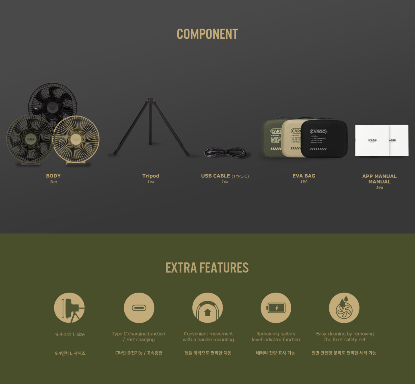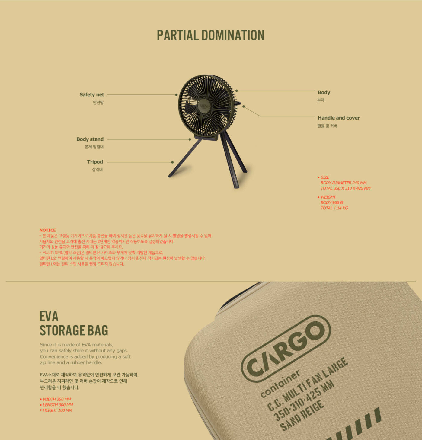 รายละเอียด : MULTI FAN L พัดลมไร้สายรุ่นใหม่แบรนด์ Cargo container จากประเทศเกาหลี พัดลม Multi fan L ให้การไหลเวียนของอากาศได้ดีขึ้นกว่าเดิม ด้วยการออกแบบใบพัดมากถึง 7 ใบ และขนาดที่กว้างถึง 9.4 นิ้ว (24 ซม.) นอกจากนี้ ความพิเศษของรุ่น Multi fan L ยังสามารถใช้งานได้อย่างง่ายดาย สามารถควบคุมการเปิด-ปิด ตั้งเวลา ผ่านแอปในสมาร์ทโฟนได้อีกด้วย Multi fan L มาพร้อมแบตเตอรี่ความจุสูง LI-ION 3.7V 13500mAh (11.1V 4500mAh) ที่ผ่านการรับรองโดย KC และคลื่นแม่เหล็กไฟฟ้า รับประกันความทนทานและความเสถียร ใช้งานได้สูงสุด 9 ชั่วโมงที่ความเร็วพัดลมต่ำสุด และ 3 ชั่วโมง 30 นาทีที่การตั้งค่าความเร็วสูงพิเศษ ให้ลมที่เงียบและสบายด้วยมอเตอร์ BLDC (มอเตอร์เสียงเบา)