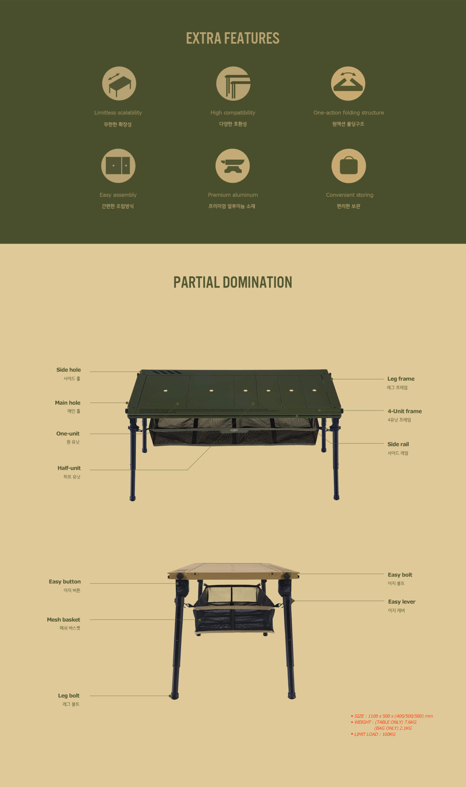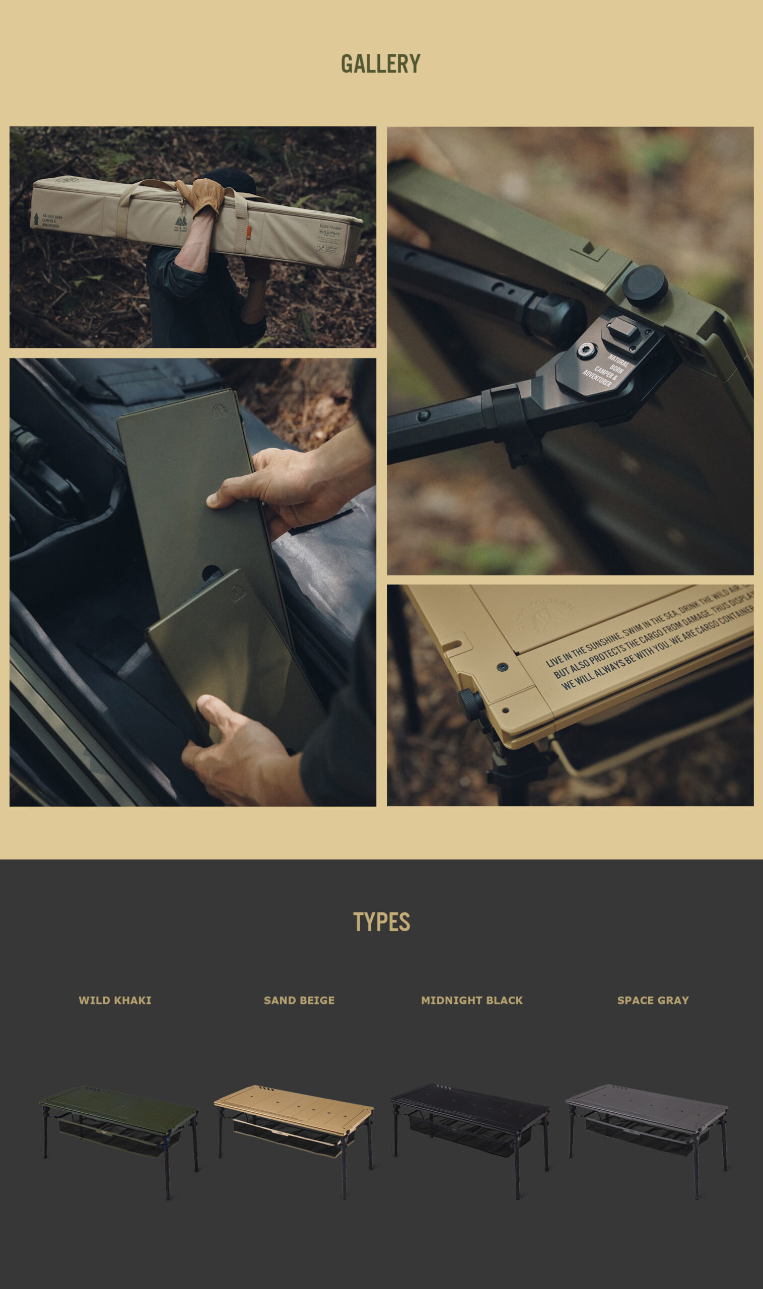 รายละเอียด : โต๊ะ COMFORT IGT เป็นนวัตกรรมโต๊ะกลางแจ้งแบบโมดูลาร์ที่ออกแบบมาเพื่อตอบสนองทุกความต้องการของนักท่องเที่ยวและผู้รักการตั้งแคมป์ ด้วยเทคโนโลยีเฉพาะของ CARGO CONTAINER โต๊ะนี้โดดเด่นด้วยโครงขาแบบออลอินวันที่ได้รับการจดสิทธิบัตร ช่วยให้การพับและกางขาโต๊ะทำได้อย่างง่ายดาย พร้อมคันโยก Easy สำหรับปรับความยาวขาโต๊ะ ความยืดหยุ่นของโต๊ะ COMFORT IGT ไม่มีที่สิ้นสุด ด้วยความสามารถในการปรับขนาดได้ตั้งแต่โต๊ะขนาดเล็กสำหรับ 1-2 คน ไปจนถึงโต๊ะขนาดใหญ่สำหรับกลุ่มใหญ่ ขาโต๊ะสามารถปรับได้ 3 ระดับทั้งในแบบปกติ (400/500/580 มม.) และแบบยาว (555/665/840 มม.) ทำให้สามารถใช้งานได้ทั้งในโหมดนั่งและยืน นอกจากนี้ ยังมีระบบ ‘Easy Bolt’ ที่ช่วยให้ประกอบโต๊ะได้อย่างมั่นคงโดยไม่ยุ่งยาก และ ‘สลักขา’ ที่ช่วยปรับความสูงของขาแต่ละข้างให้เหมาะกับพื้นผิวที่ไม่เรียบ