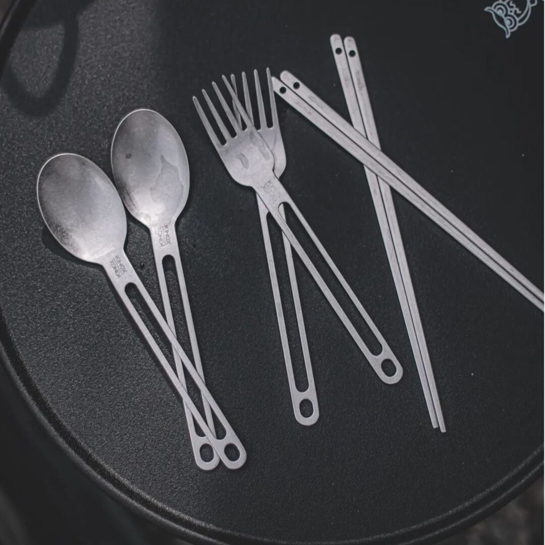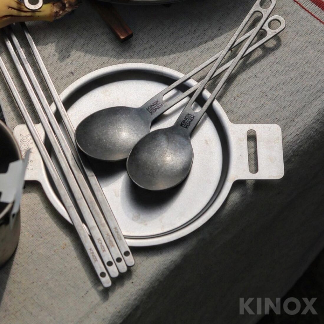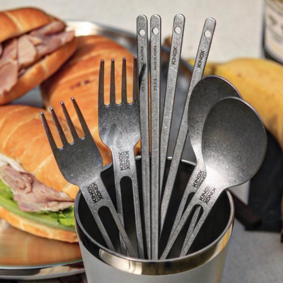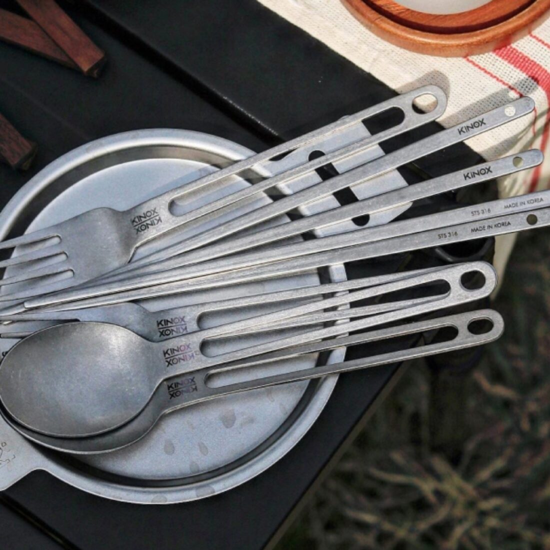 เติมเต็มสุนทรียภาพบนโต๊ะอาหารแคมป์ปิ้งของคุณด้วยชุดช้อนส้อมและตะเกียบ KINOX ที่ผสมผสานความทนทานเข้ากับดีไซน์สไตล์วินเทจได้อย่างลงตัว ผลิตจากสแตนเลสสตีลเกรดการแพทย์ STS 316 ซึ่งเป็นวัสดุที่ใช้ในอุปกรณ์การแพทย์และชิ้นส่วนอากาศยาน จึงเหนือกว่าด้วยความทนทานต่อการกัดกร่อนและสุขอนามัยที่ยอดเยี่ยม พื้นผิวผ่านการขัดแบบ Sandblasted ให้ความรู้สึกแบบรัสติกสไตล์เอาท์ดอร์ และยังช่วยลดการเกิดรอยขีดข่วนและรอยนิ้วมือได้เป็นอย่างดี