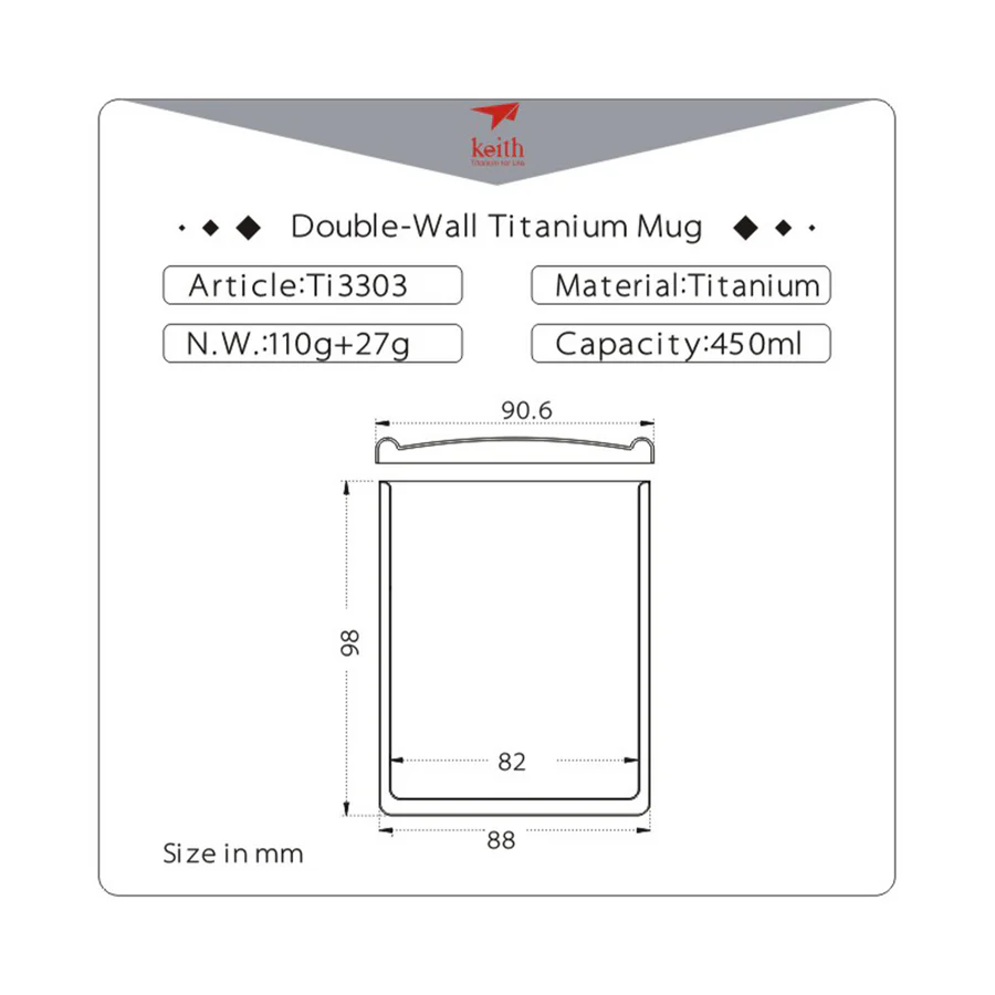 รายละเอียด : แก้วไทเทเนียมแบบ Double Wall จาก Keith พร้อมฝาปิดไทเทเนียม เป็นแก้ว2 ชั้น (Double wall) จะช่วยให้สามารถเก็บความร้อนและเย็นได้นานยิ่งขึ้น ตัวแก้วและฝาผลิตจากโลหะไทเทเนียม น้ำหนักเบา ช่วยให้สามารถจับแก้วได้แม้จะบรรจุของร้อนอยู่ เหมาะสำหรับเป็นอุปกรณ์พกพาระหว่างการเดินทาง