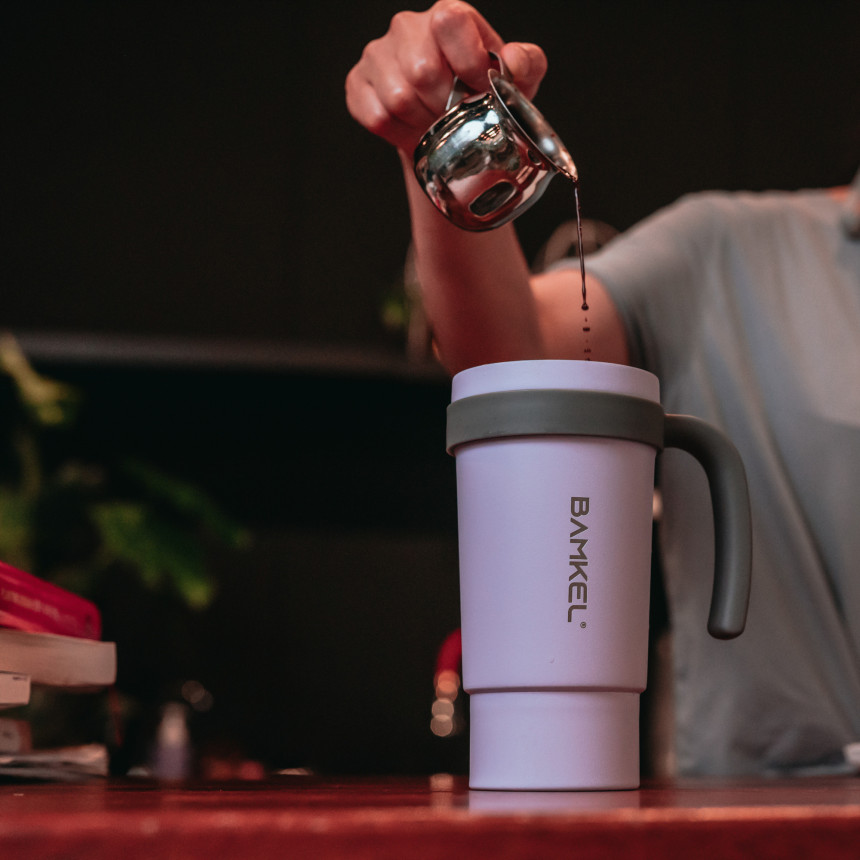 รายละเอียด : แก้วน้ำขนาดใหญ่ สำหรับเครื่องดื่ม ร้อน , เย็น จาก Bamkel แก้วน้ำโครงสร้างสูญญากาศสแตนเลส2ชั้น เพื่อให้เครื่องดื่มร้อนหรือเย็นไปกับคุณทุกเวลา ผลิตจาก สแตนเลส 304 จึงปลอดภัยสำหรับอาหาร มาพร้อมที่จับขนาดใหญ่เหมาะสำหรับที่วางแก้วในรถยนต์และฝาปิดคุณภาพสูง