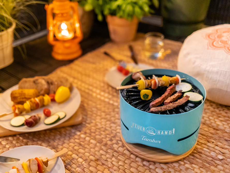Feuerhand Tamber เตาตั้งโต๊ะไร้ควัน เตาเผาชั้นในฝนัง2ชั้น(Stainless Steel) ใช้หลักการ Secondary combustion ก๊าซเสียจะถูกเผาซ้ำด้วยการป้อนอากาศจุดที่2บริเวณส่วนบนของเตาหลังการเผารอบแรกของถ่านจากด้านล่าง ทำให้ได้ความร้อนเพิ่มและลดควัน