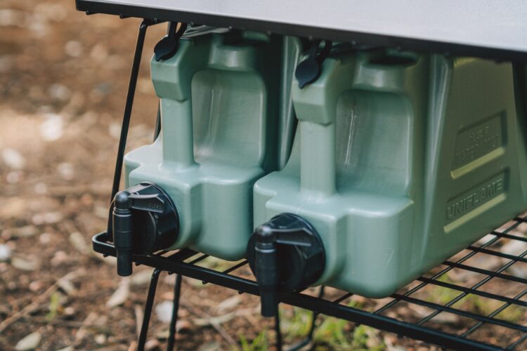 หมดปัญหาเรื่องถังน้ำเลื่อนตกหรือขยับไปมาเวลาเปิดก๊อก ตัวถังมาในสีเขียว Khaki Green สุดคลาสสิกที่เข้ากับชุดอุปกรณ์แคมป์ปิ้งสาย Military หรือ Earth Tone ได้อย่างลงตัว มีหูหิ้วในตัว แข็งแรงทนทาน และใช้งานง่าย
