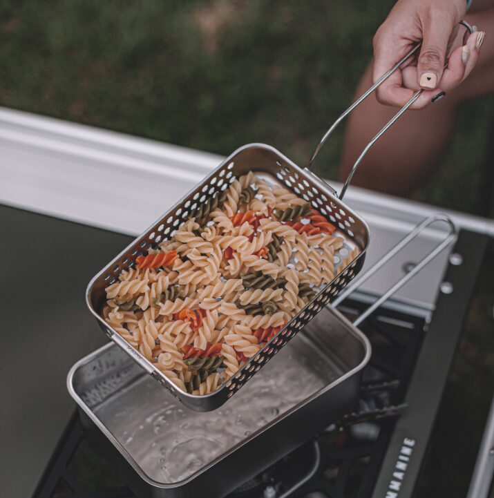 ขยายฟังก์ชันการทำอาหารของคุณให้หลากหลายยิ่งขึ้นด้วยตะกร้าสำหรับทอด KINOX ที่ออกแบบมาเพื่อใช้งานร่วมกับหม้อสนาม KINOX โดยเฉพาะ ผลิตจากสแตนเลสสตีล STS304 ทั้งชิ้น จึงแข็งแรงทนทานสูง ปลอดภัย และไม่เป็นสนิม เหมาะอย่างยิ่งสำหรับการทอดอาหารแบบ Deep-fry, ใช้สะเด็ดน้ำมัน หรือใช้เป็นตะกร้าล้างผักผลไม้ เป็นอุปกรณ์เสริมที่ชาวแคมป์ปิ้งควรมีติดไว้