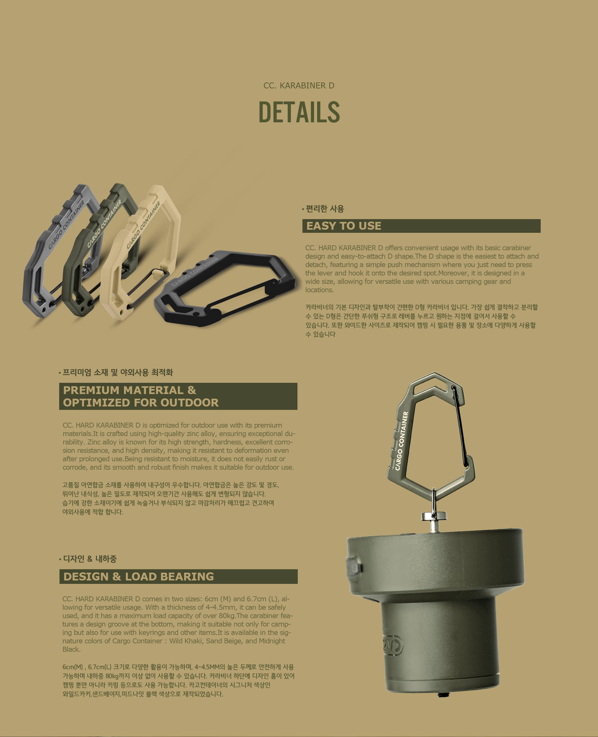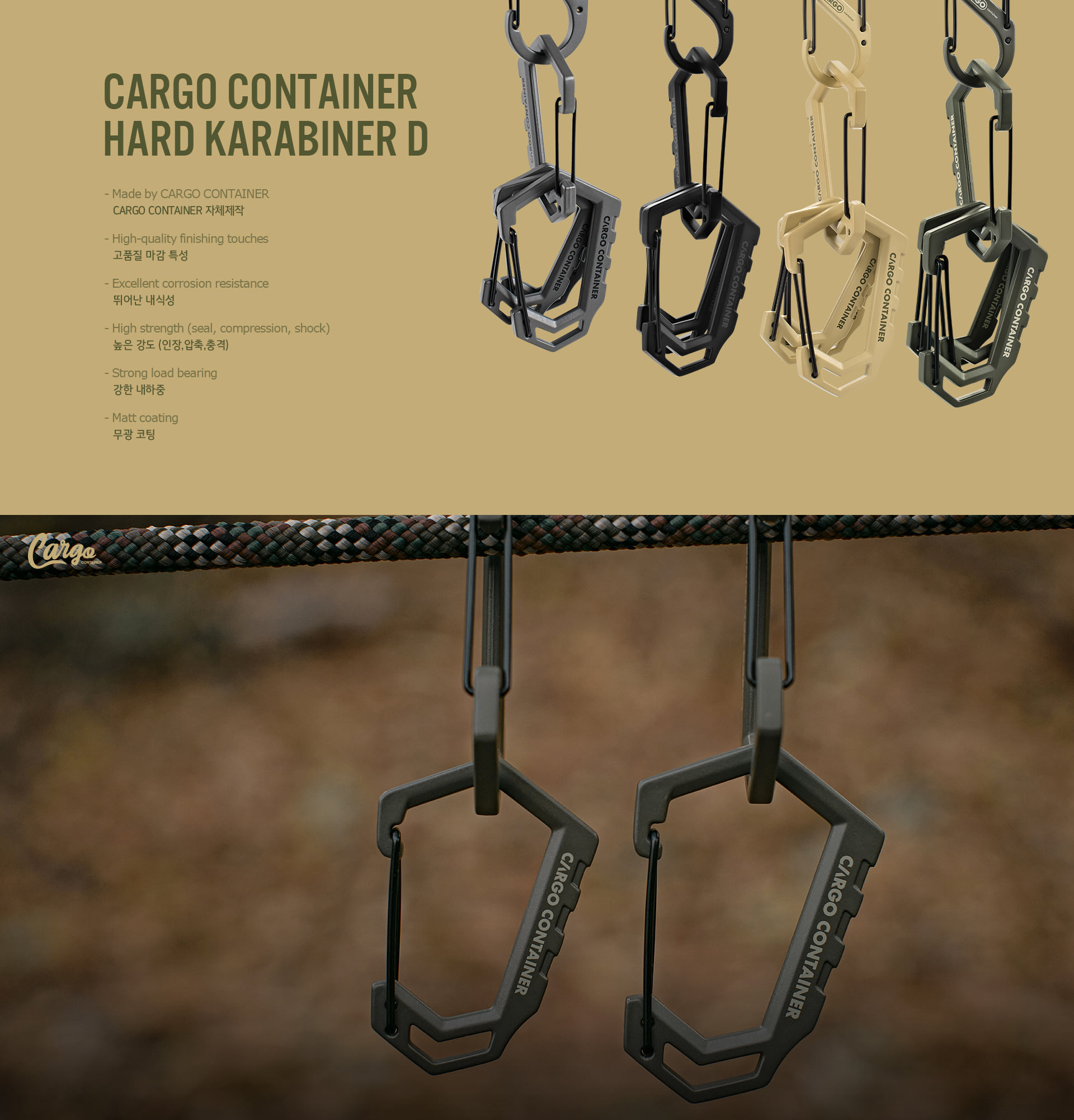 รายละเอียด : HARD KARABINER D สร้างสรรค์โดยผสมผสานดีไซน์ของ Cargo Container เข้ากับดีไซน์อันโดดเด่นของคาราบิเนอร์ คาราบิเนอร์รูปตัว D ทันสมัยใช้งานได้อเนกประสงค์