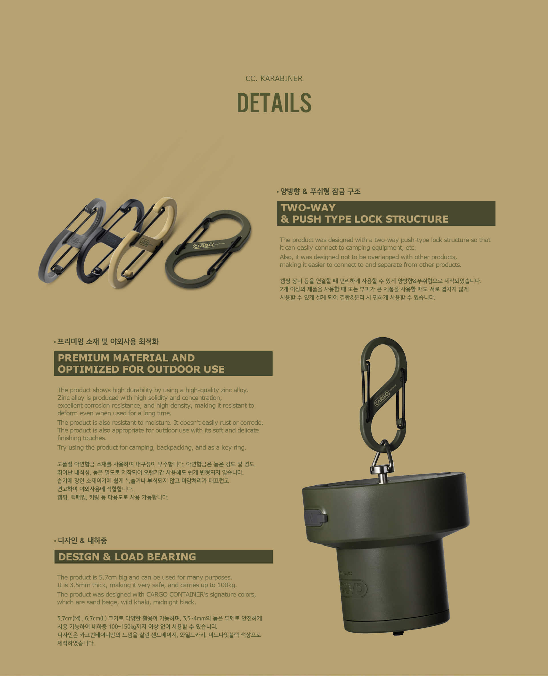 รายละเอียด : Hard Carabiner คาราไบเนอร์ดีไซน์สุดเท่จากแบรนด์ Cargo Container สามารถแขวนบนกระเป๋าเป้ เชือก พวงกุญแจ ตะเกียง ฯลฯ การใช้งานกลางแจ้งสามารถใช้สำหรับเต็นท์ เชือก และข้อต่ออื่นๆได้ สามารถรับน้ำหนักได้ถึง 100 กิโลกรัม