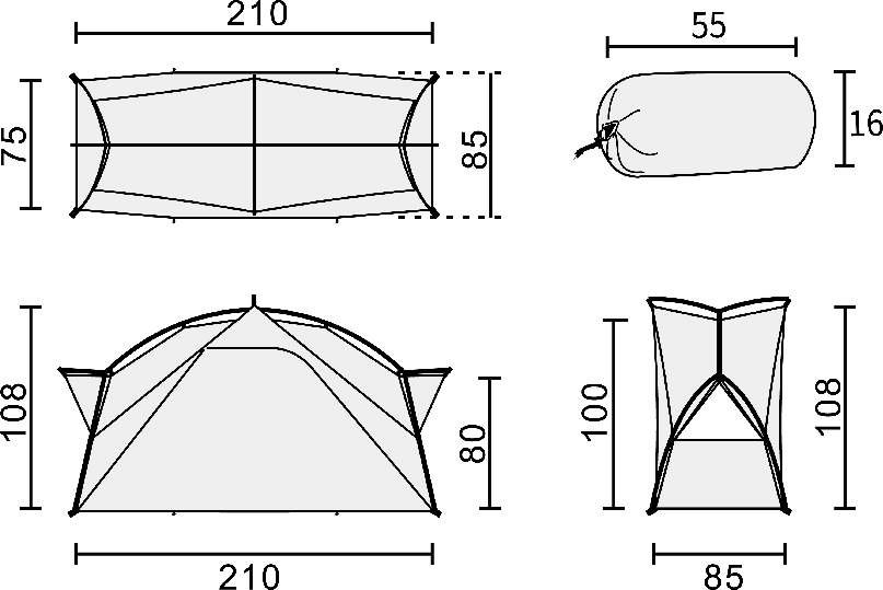 อุปกรณ์ที่ได้รับ : ผ้าเต็นท์ , โครงเต็นท์ , อุปกรณ์เสริม: เสาน้ำหนักเบาพิเศษ (J. Stake F) x 8, เชือกดึงแรงดึงสูง (2 มม. – 1.6 ม.) x 4 เส้น