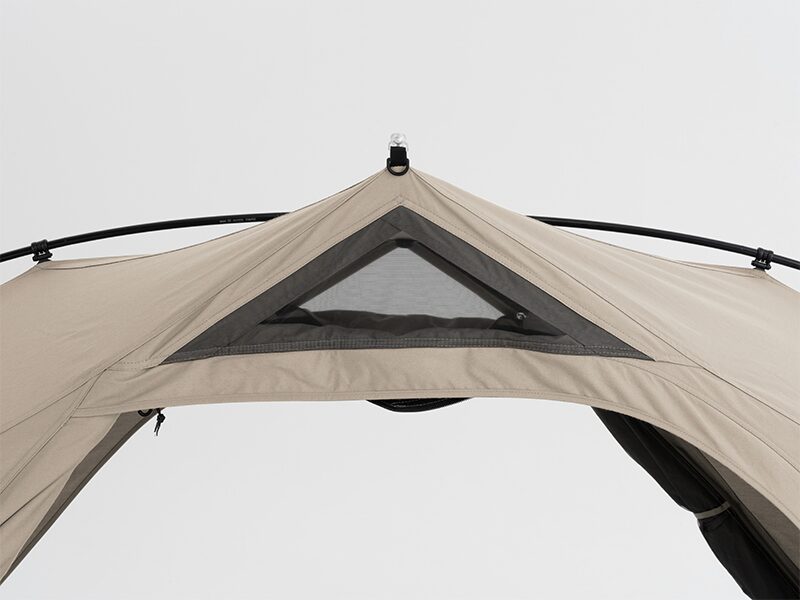 จุดเด่นอีกอย่างคือโครงสร้าง TR (Tension Ridge) และ Horn ที่ช่วยยกความสูงของทางเข้าให้สูงกว่าส่วนกลาง พร้อมผนังเต็นท์ที่เกือบตั้งฉากทั้งสี่ด้าน เพิ่มพื้นที่ใช้สอยภายในให้มากขึ้น เข้า-ออกได้สะดวก และมอบทัศนียภาพที่เปิดโล่งสบายตา อีกทั้งยังออกแบบให้มีช่องระบายอากาศที่จุดสูงสุดทั้งสี่มุม ช่วยลดความชื้น ลดการควบแน่นภายในเต็นท์ ทำให้คุณพักผ่อนได้อย่างเต็มที่ตลอดทั้งคืน