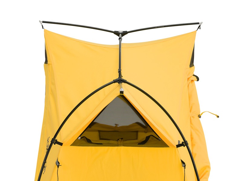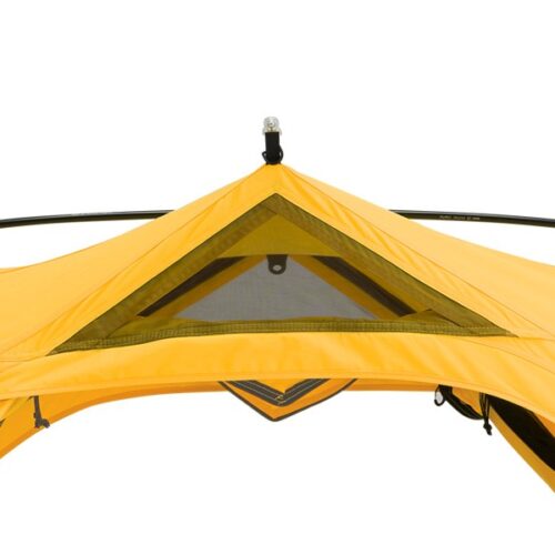 จุดเด่นอีกอย่างคือโครงสร้าง TR (Tension Ridge) และ Horn ที่ช่วยยกความสูงของทางเข้าให้สูงกว่าส่วนกลาง พร้อมผนังเต็นท์ที่เกือบตั้งฉากทั้งสี่ด้าน เพิ่มพื้นที่ใช้สอยภายในให้มากขึ้น เข้า-ออกได้สะดวก และมอบทัศนียภาพที่เปิดโล่งสบายตา อีกทั้งยังออกแบบให้มีช่องระบายอากาศที่จุดสูงสุดทั้งสี่มุม ช่วยลดความชื้น ลดการควบแน่นภายในเต็นท์ ทำให้คุณพักผ่อนได้อย่างเต็มที่ตลอดทั้งคืน