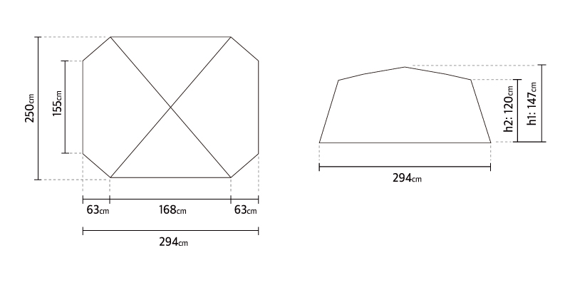 ขนาดใช้งาน : กว้าง 294ซม. x ยาว 250ซม. x สูง 147ซม.