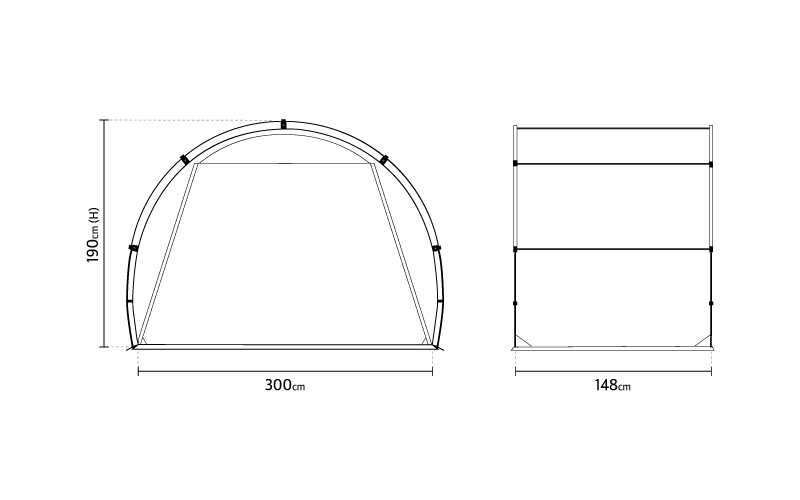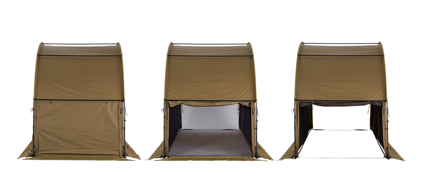 ออกแบบด้วยระบบโมดูลาร์ที่สามารถปรับขยายได้ตามต้องการ ติดตั้งง่ายด้วย Jake’s Boots ที่ยึดเสาได้แน่นหนา แม้เป็นเต็นท์แบบอุโมงค์แต่สามารถกันลมได้ดีด้วยคานแนวนอน