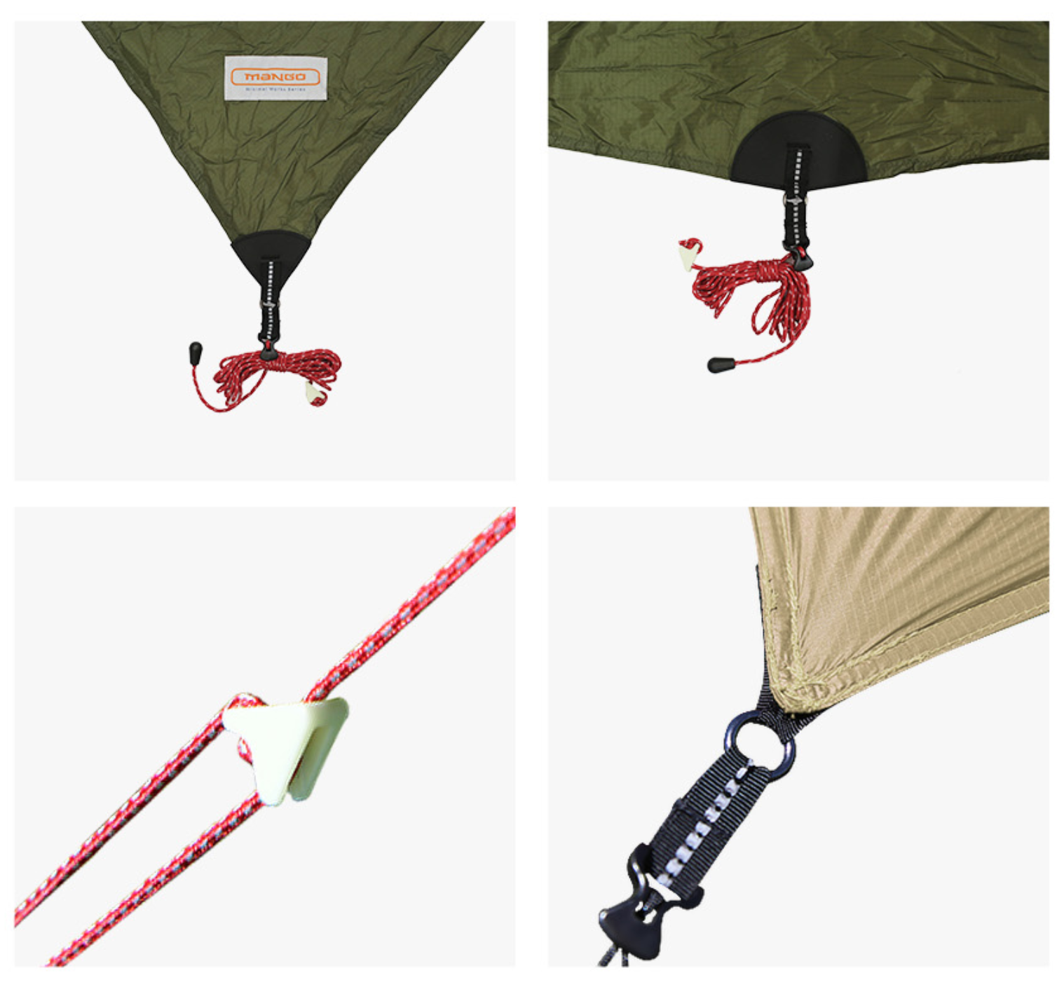 อุปกรณ์ที่มีมาในชุด : 1 tarp skin , 8 strings , 8stoppers , 8 packs , 1 storage bag
