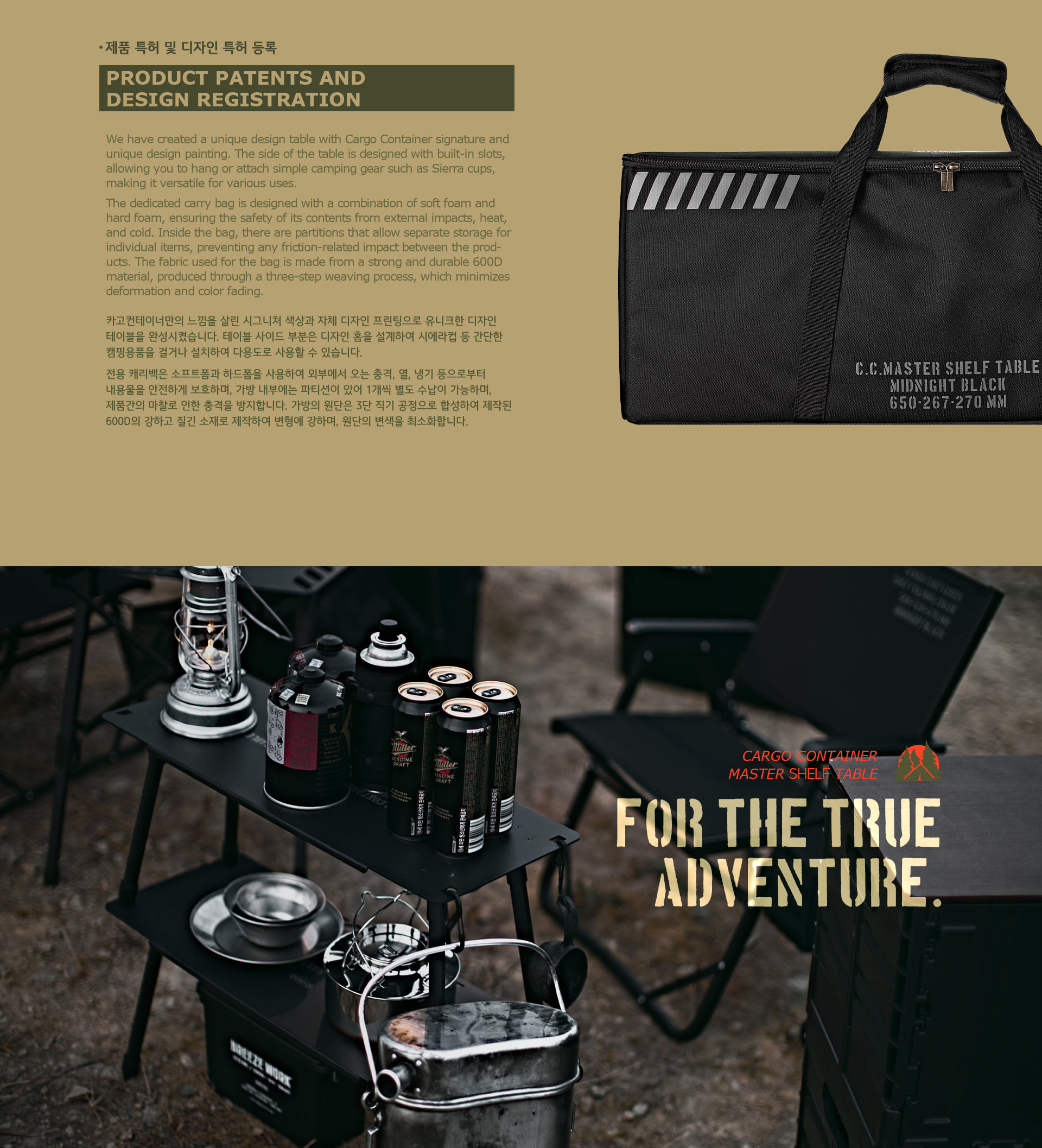 รายละเอียด : โต๊ะ MASTER SHELF TABLE สำหรับชาวแคมป์โดยเฉพาะ ออกแบบมาให้ใช้งานได้หลากหลายตามสไตล์ของผู้ใช้งาน ในชุดประกอบด้วยโต๊ะ 2 ตัว ซึ่งสามารถใช้เป็นชั้นวาง 2 ชั้นเมื่อติดตั้งในแนวตั้ง หรือใช้เป็นโต๊ะรับประทานอาหารแบบเตี้ยเมื่อใช้งานในแนวนอน เราพัฒนาผ้าหุ้มขาโต๊ะของเราเองขึ้นมาเพื่อยึดโต๊ะด้านล่างให้มั่นคงเมื่อใช้เป็นชั้นวาง นอกจากนี้ โต๊ะและขายังทำเป็นชิ้นเดียว ช่วยให้ติดตั้งและถอดชิ้นส่วนได้ง่ายและรวดเร็ว