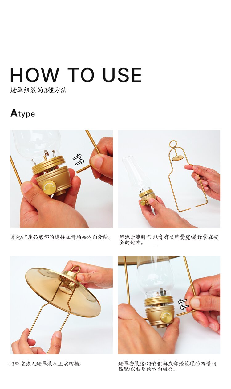 ตะเกียงแก๊สแบบเปลวเทียน ด้วยรูปลักษณ์ของการออกแบบ ให้ความรู้สึกคลาสสิก โดยใช้โคมไฟ