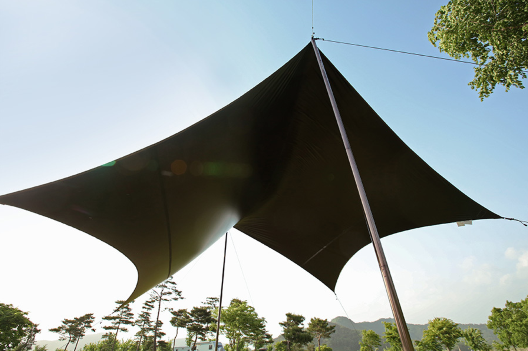 ทาร์ปคุณภาพสูง จาก Minimal works วัสดุทำจากไนลอนริปสตอปเคลือบซิลิโคน และด้วยการเคลือบเม็ดสีดำที่มีคุณสมบัติป้องกันแสงที่ดีเยี่ยม ทำให้มีน้ำหนักเบา ทนทาน ป้องกันแสงแดดได้เป็นอย่างดี สามารถใช้ได้ทุกฤดู
