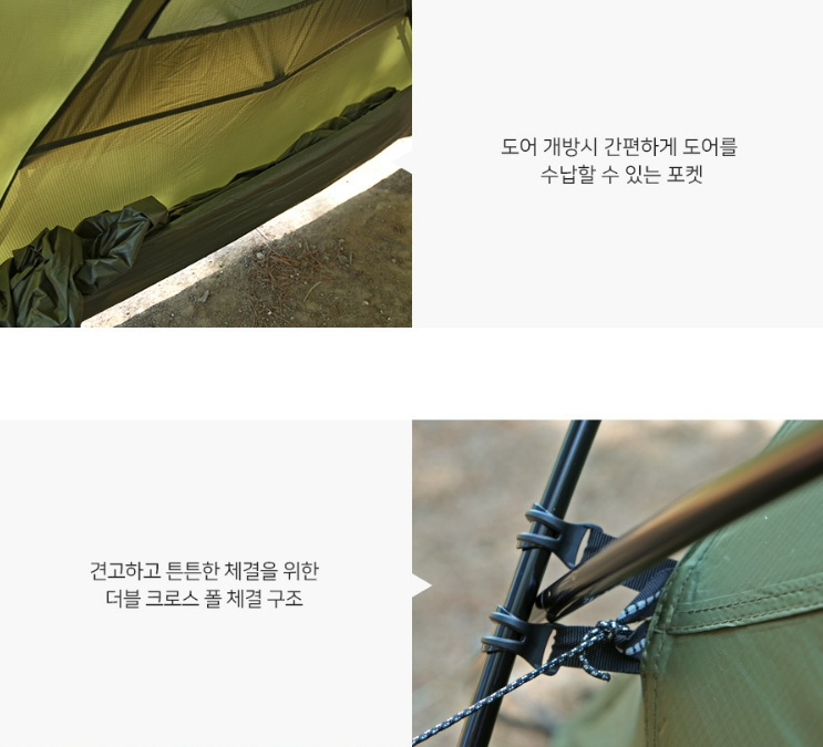 – Shelter : SKIN-Nylon400 PU/SIL(waterproof 2,000mm)