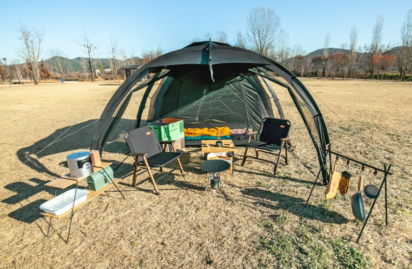 ตัว Shelter มาพร้อมมุงตาข่ายรอบตัวมาให้ Shelter สามารถกางออกได้หลายรูปแบบ เพื่อเพิ่มพื้นที่การใช้งาน สามารถใส่ Inner (จำหน่ายแยก) หรือ Ground sheet ได้