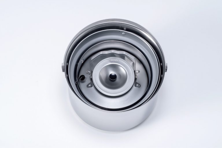 กาต้มน้ำ อลูมิเนียมจาก Uniflame น้ำหนักเบา พกพาสะดวก ขนาดความจุ 900มล. สามารถเก็บไว้ในหม้อ fan 5 DX ได้ หูจับมีการเจาะรูเพื่อลดการสะสมความร้อนในตอนใช้งาน