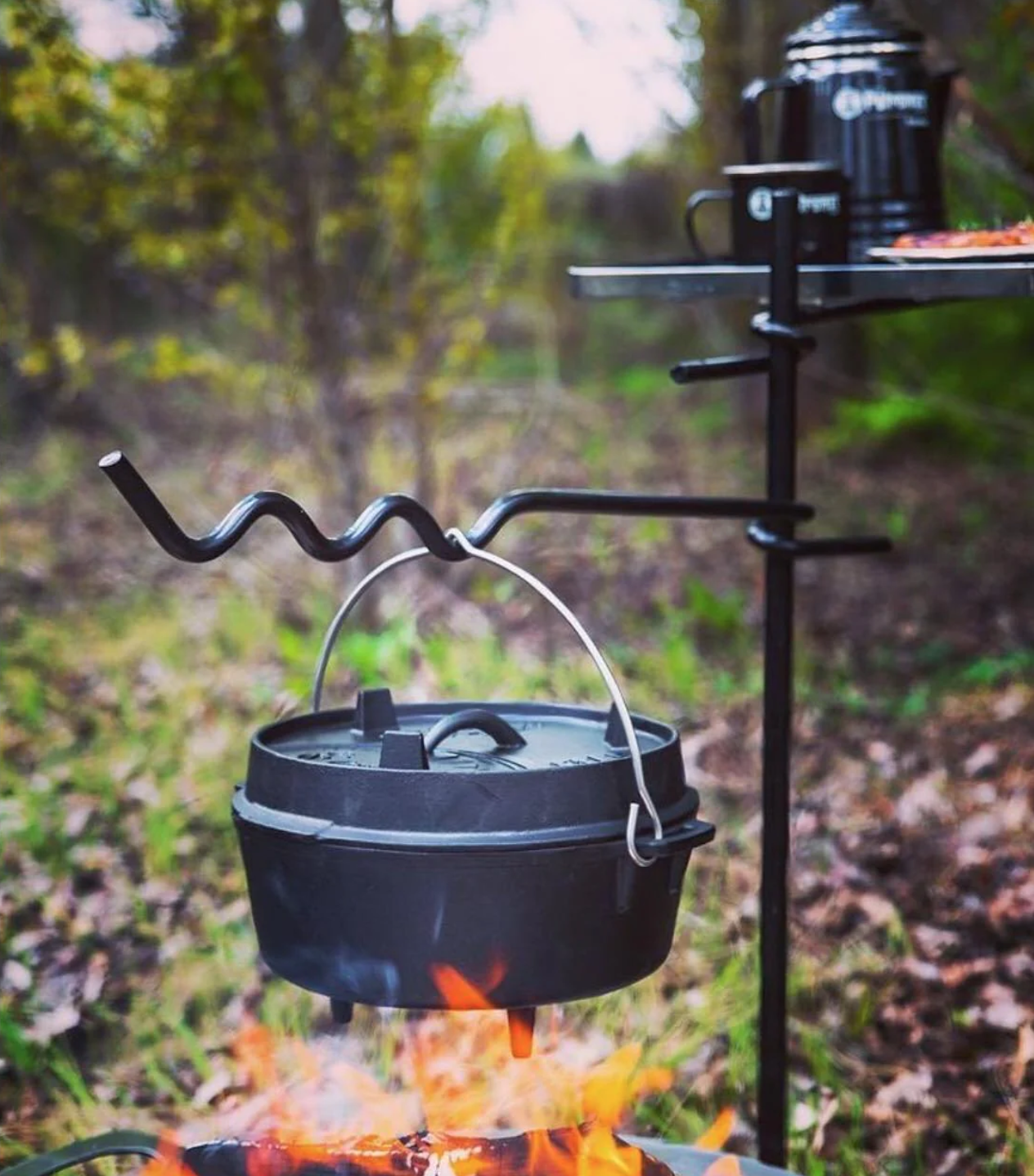 Dutch oven หม้อทำอาหารเหล็กหล่อ ft4.5 ขนาดสำหรับ จำนวนคน 2-5 คน มีขาตั้ง 3 ขา ความจุสูงสุดของหม้อ 3.5 ลิตร และฝา 1 ลิตร เหมาะสำหรับการทำอาหารบนกองไฟ ปรุงอาหารได้ทั้งประเภทผักและเนื้อสัตว์ ด้วยคุณสมบัติพิเศษน้ำภายในอาหารจะไม่ระเหยออกไปมากเหมือนหม้อทั่วไปทำให้อาหารมีความชุ่มชื้นกรอบนอกนุ่มใน ฝาปิดออกแบบมาเป็นพิเศษที่สามารถใช้เป็นกระทะหรือแผ่นปิ้งย่าง