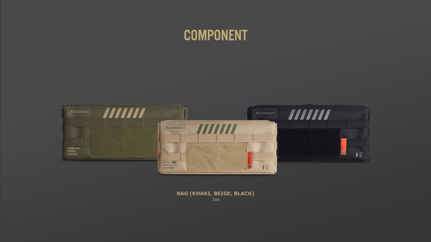 รายละเอียด : กระเป๋าข้างอเนกประสงค์ ‘SIDE STORAGE BAG’ ที่ได้รับการออกแบบให้มีที่แขวนแบบสายรัดที่พัฒนาขึ้นเองซึ่งสามารถยึดในแนวนอนไปทางด้านหลังได้ นอกจากนี้ มีการใช้ตัวล็อค ‘FIDLOCK’ ของเยอรมันเพื่อการยึด/ปลดที่ง่ายดาย และยังมีการผลิตปุ่มแบบ snap ที่สามารถยึดในแนวตั้งได้ ดังนั้นจึงสามารถติดตั้งและใช้กับผลิตภัณฑ์ต่างๆได้ เพิ่มความสะดวกสูงสุดด้วย ฝาเปิด/ปิดที่ทำด้วยแม่เหล็ก คุณจึงสามารถเปิดและปิดได้อย่างสะดวกและง่ายดาย แม้ว่าจะมีน้ำหนักเพียง 400 กรัม แต่ก็สามารถรับน้ำหนักได้ถึง 3 กก. เนื่องจากมีแผ่น PP ภายในที่ใส่ไว้ ช่วยให้คุณเก็บของที่มีน้ำหนักมากได้