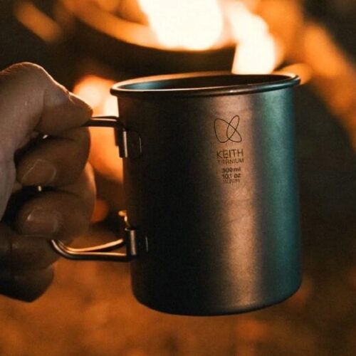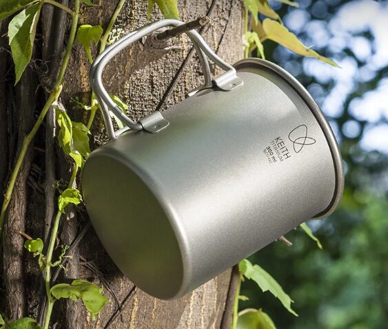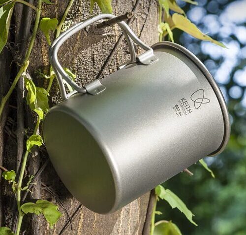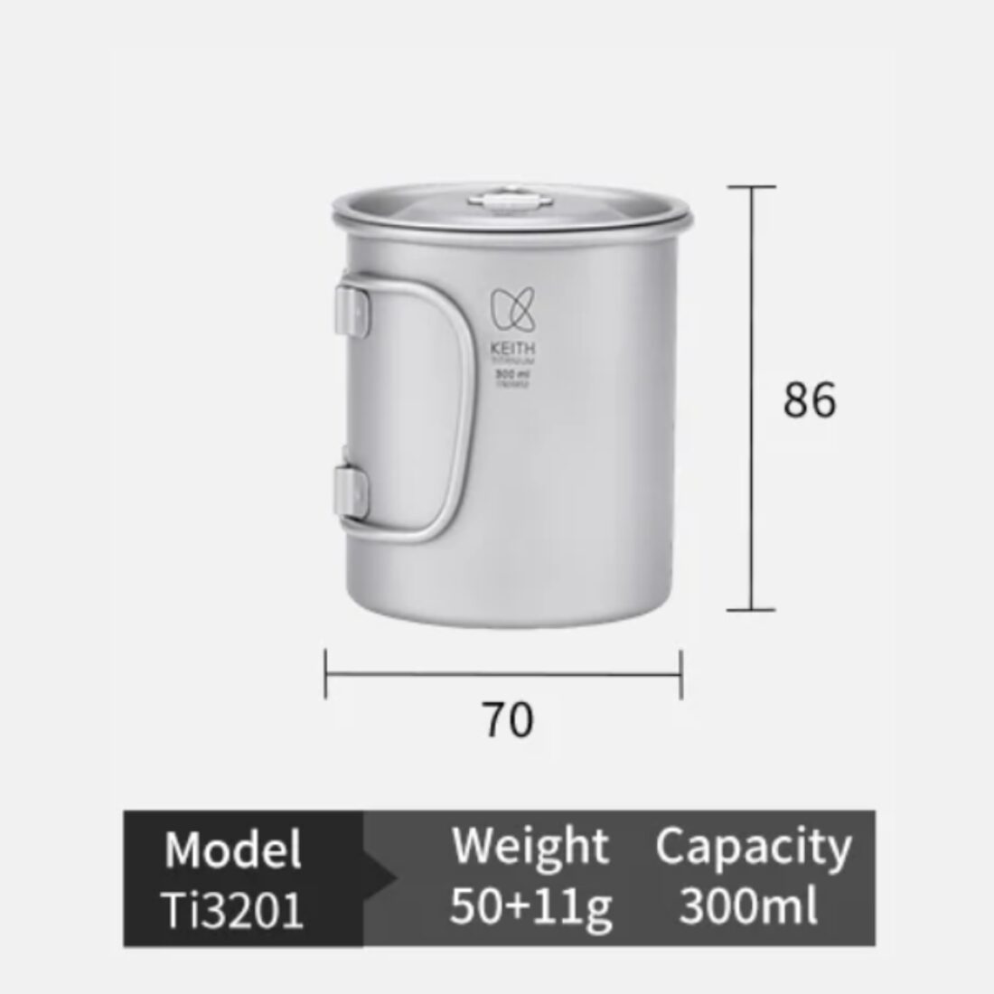 ชื่อสินค้า : Single-Wall Titanium Mug with Folding Handle and Lid Keith Ti3203