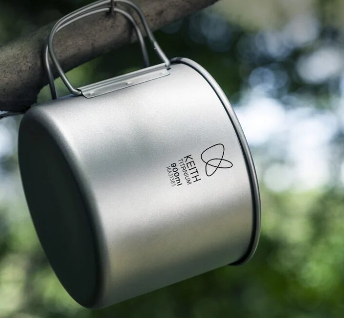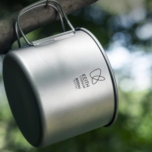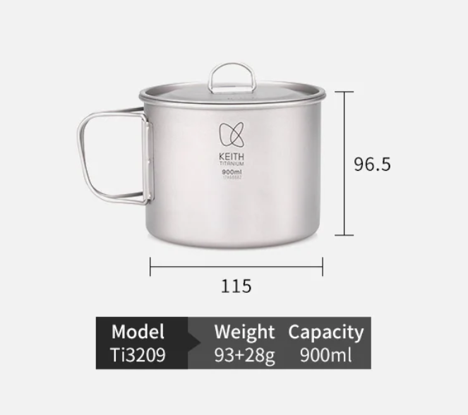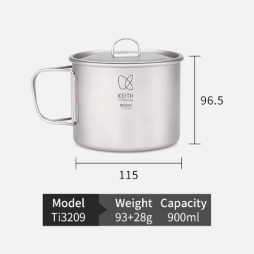 ชื่อสินค้า : Single-Wall Titanium Mug with Folding Handle and Lid Keith Ti3209