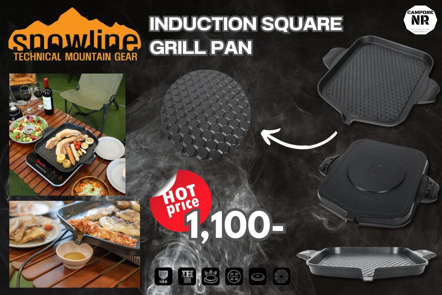 รายละเอียด : กระทะปิ้งย่างสี่เหลี่ยมตัวใหม่ล่าสุดจาก Snowline แบรนด์อุปกรณ์แคมป์ปิ้ง outdoor จากประเทศเกาหลี ที่สามารถใช้ได้กับเตาแทบทุกประเภท ผิวกระทะลายรังผึ้ง ถูกฝังอยู่บนผนังกระทะผ่านกระบวนการแกะสลักด้วยเทคโนโลยี แก้ปัญหาเรื่องการระบายน้ำมันและอาหารติดกระทะได้อย่างมีประสิทธิภาพ พร้อมเคลือบผิวมาถึง5ชั้น การเคลือบหินอ่อนเรซินฟลูออรีนแบบไม่ติด 5 ชั้นช่วยให้ใช้งานได้ทันที และทำความสะอาดง่ายเนื่องจากอาหารไม่ติดกระทะ