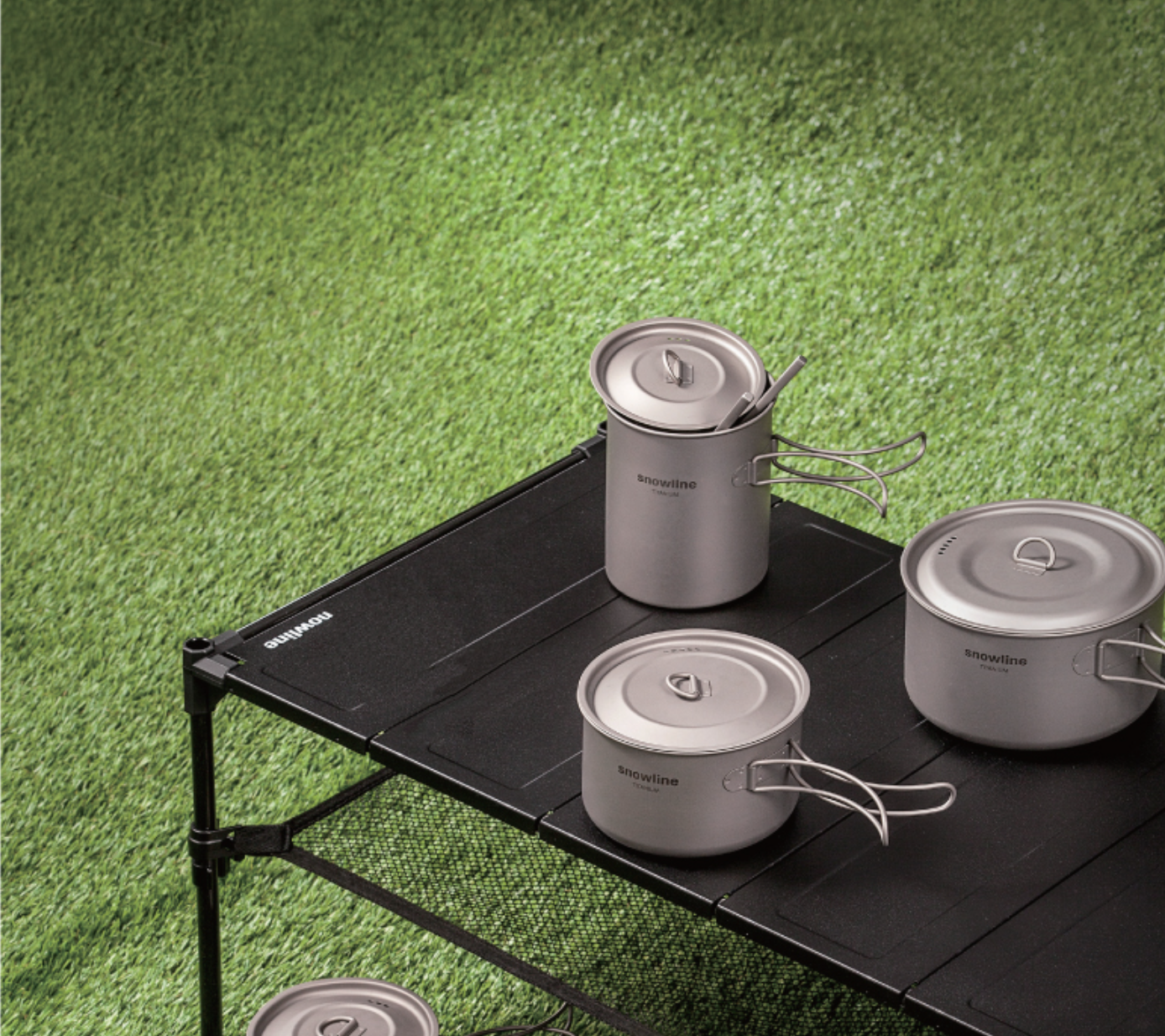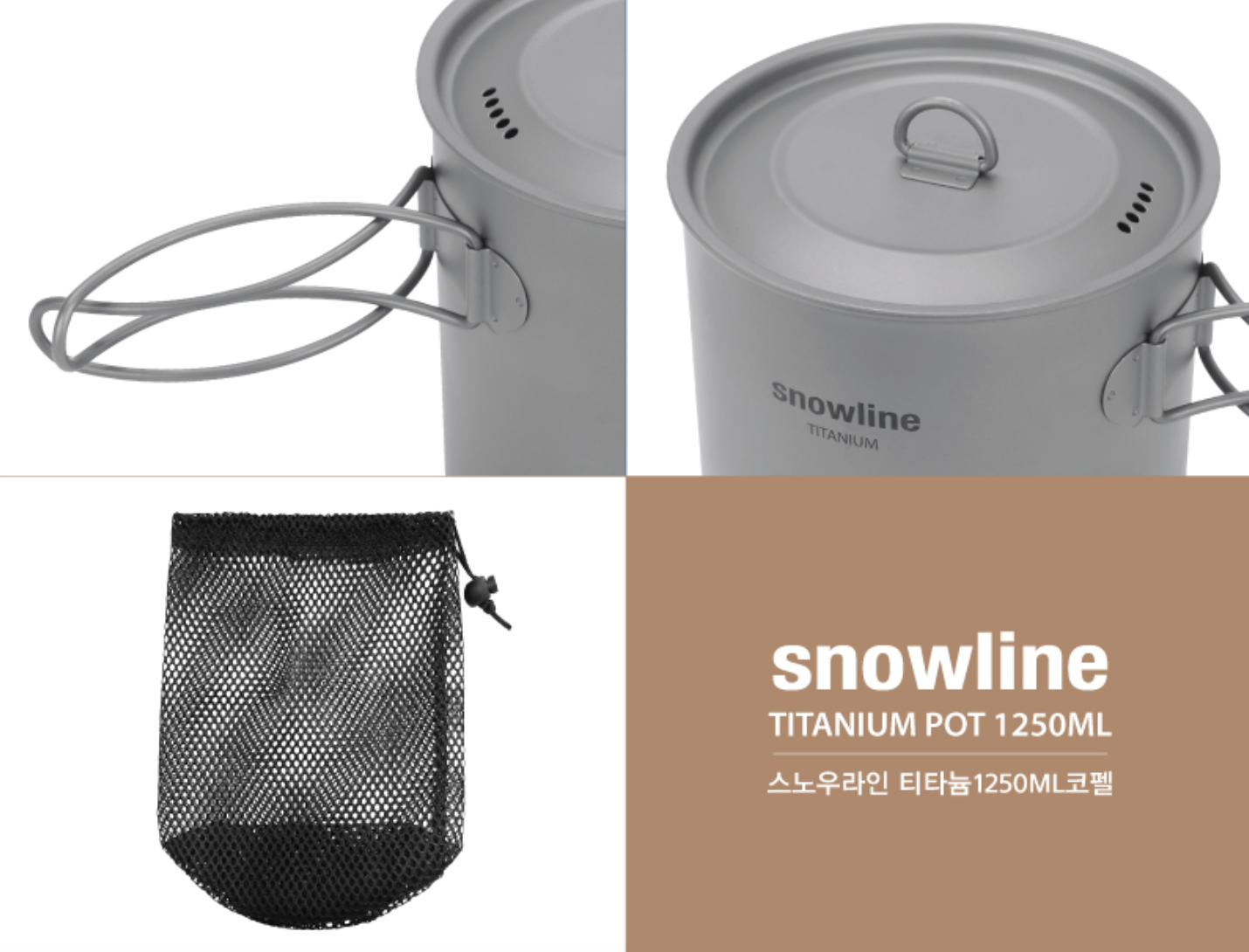 หม้อไทเทเนียม จาก snowline ขนาดความจุ 1250 มล. น้ำหนักเบา แข็งแรง มาพร้อมฝาปิด สามารถใช้กับไฟแก๊สหรือกองไฟได้
