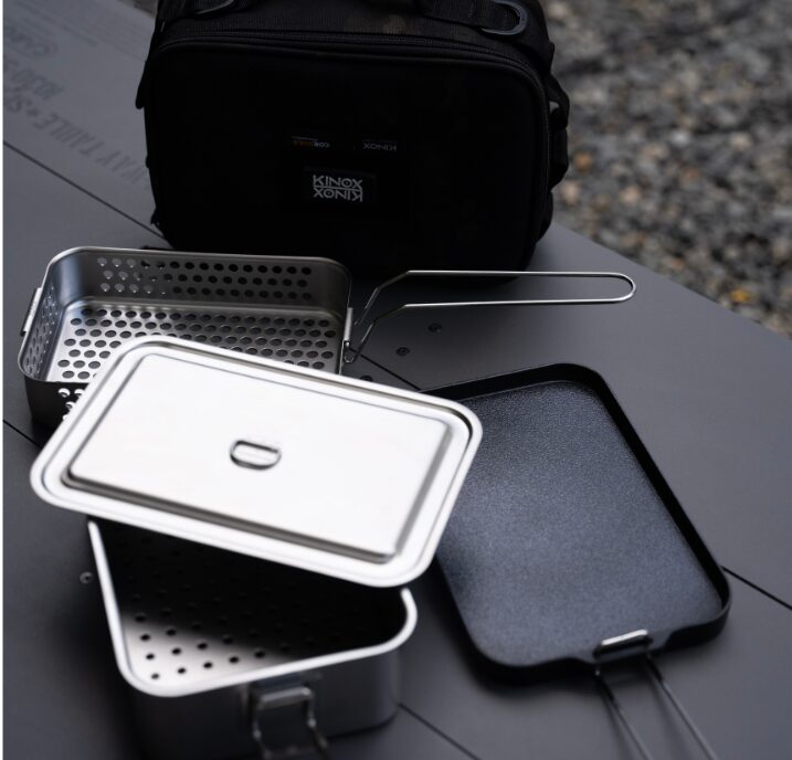 เพิ่มเมนูนึ่งให้กับมื้ออาหารแคมป์ปิ้งของคุณได้อย่างง่ายดาย ด้วยแผ่นรองสำหรับนึ่งจาก KINOX ที่ออกแบบมาโดยเฉพาะเพื่อใช้งานร่วมกับหม้อสนาม KINOX (Mess tin) ผลิตจากสแตนเลสสตีล STS304 คุณภาพสูง แข็งแรง ทนทาน และปลอดภัยต่อการประกอบอาหาร สามารถวางลงในหม้อสนามได้อย่างพอดี ทำให้คุณสร้างสรรค์เมนูนึ่งเพื่อสุขภาพได้ทุกที่ทุกเวลา