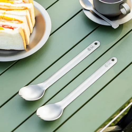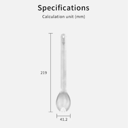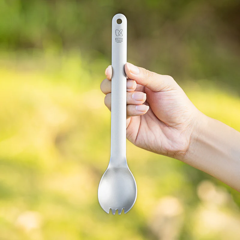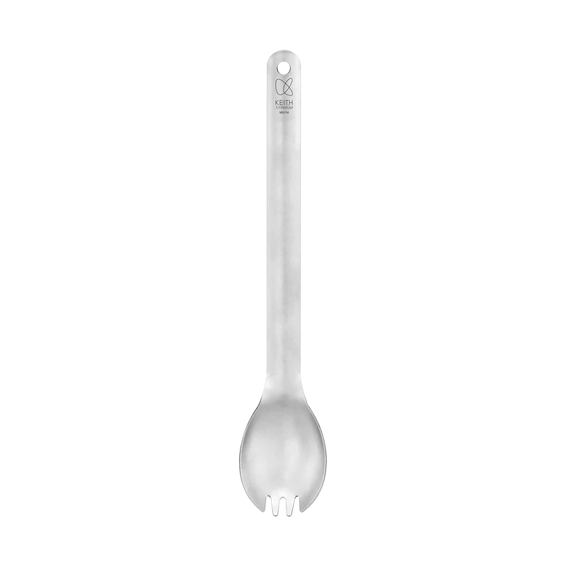 รายละเอียด : ช้อนส้อม Spork แบบด้ามยาว ผลิตจากไทเทเนียม Keith รหัส Ti5319 เป็นช้อนอเนกประสงค์ที่สามารถใช้เป็นช้อน ส้อม ได้ในตัวเดียวกัน ด้วยความยาว 22 cm ทำให้สามารถใช้คนในหม้อได้สะดวก ทั้งยังออกแบบให้มีความโค้งเพื่อให้สะดวกในการตักน้ำแกง น้ำหนักเบาเพียง 20 g