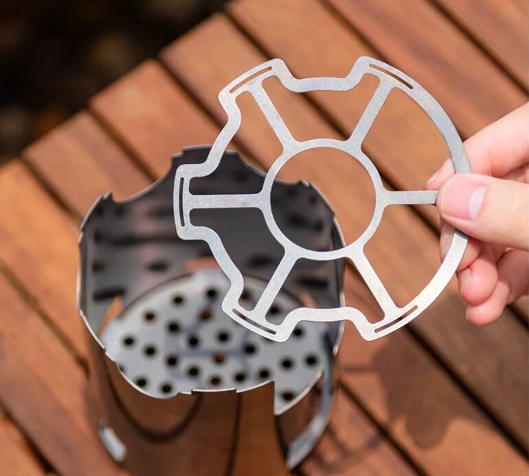 เตาฟืนประสิทธิภาพสูง (Fast and Efficient): เตาไม้ไทเทเนียมออกแบบให้มีช่องระบายอากาศที่ดีเยี่ยม ทำให้อากาศไหลเวียนได้ดี ไฟลุกไหม้ได้แรง ช่วยให้การต้มน้ำหรือทำอาหารมื้อเรียบง่ายเสร็จอย่างรวดเร็ว สามารถใช้ฟืนหรือกิ่งไม้ตามธรรมชาติเป็นเชื้อเพลิงได้เลย