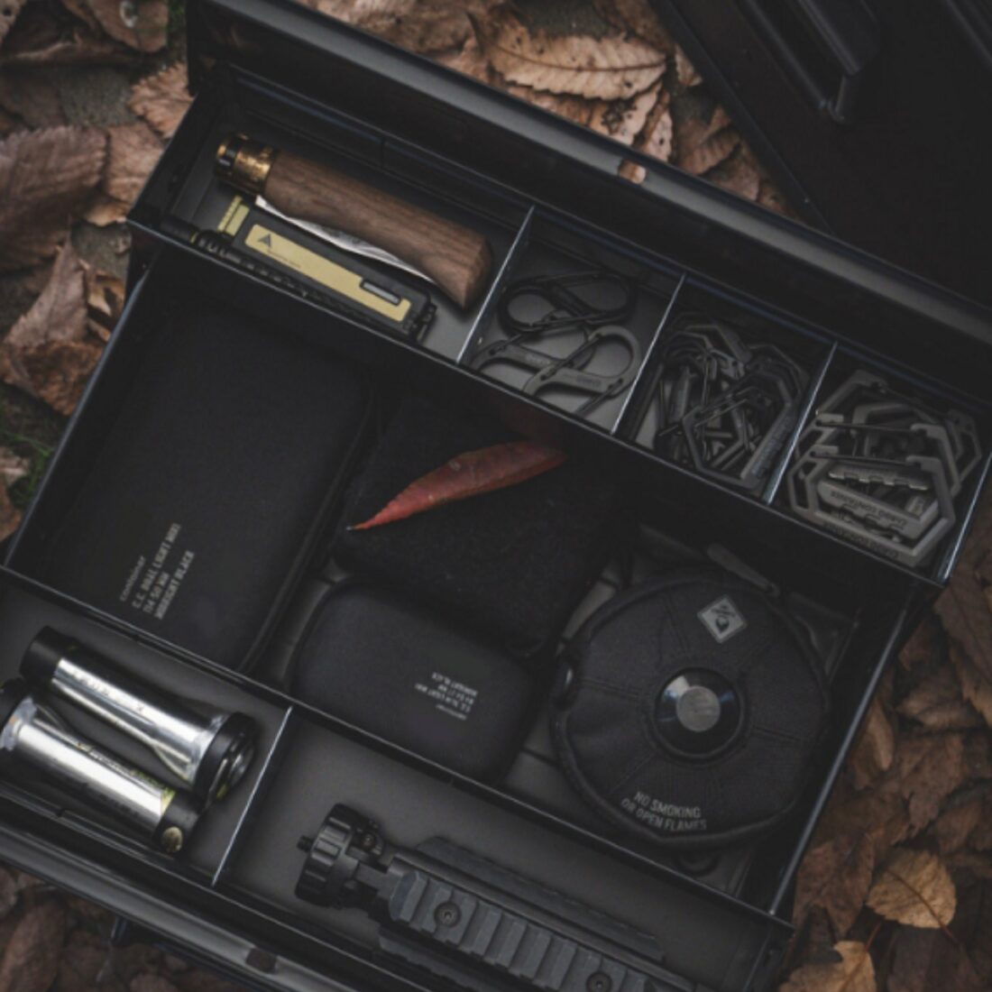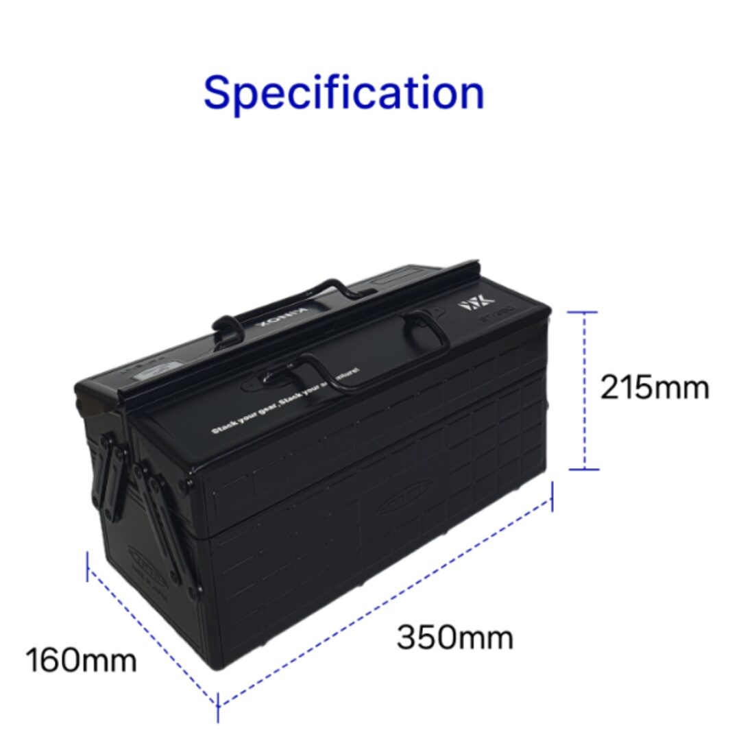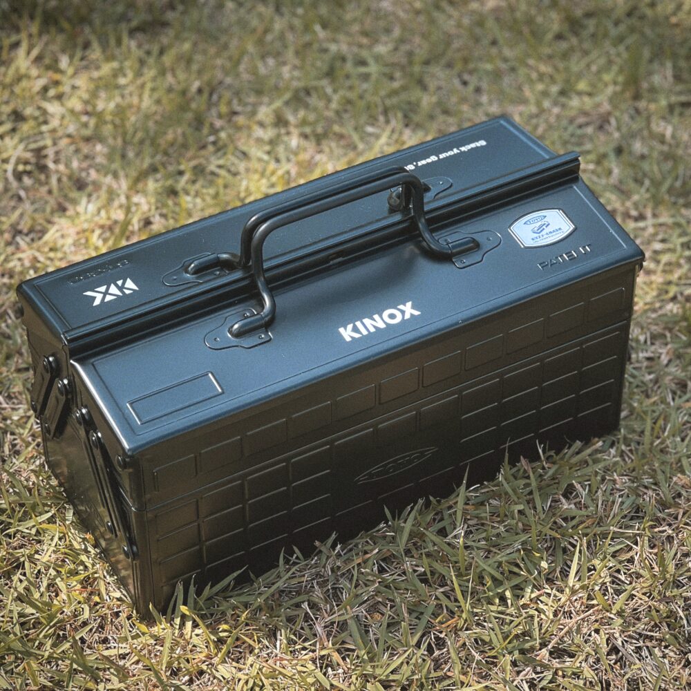ผลงานการร่วมมือสุดพิเศษระหว่าง KINOX และ TOYO STEEL จากประเทศญี่ปุ่น โดยนำกล่องเครื่องมือเหล็กรุ่น ST-350 ที่โดดเด่นด้วยดีไซน์แบบ 2 ชั้น (Cantilever) มาออกแบบในสีพิเศษเฉพาะของ KINOX ตัวกล่องผลิตจากเหล็กคุณภาพสูง แข็งแรงทนทาน เหมาะสำหรับจัดเก็บอุปกรณ์แคมป์ปิ้งที่หลากหลาย ตั้งแต่สมอบก, ค้อน, ไปจนถึงอุปกรณ์ทำกาแฟและเครื่องมือช่างต่างๆ มาพร้อมแผ่นกั้นที่ถอดปรับได้ ช่วยให้คุณจัดสรรพื้นที่ภายในกล่องได้อย่างอิสระและเป็นระเบียบสูงสุด