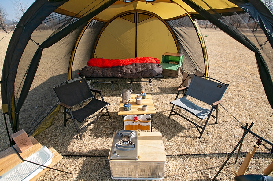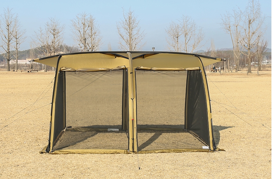 ตัว Shelter มาพร้อมมุงตาข่ายรอบตัวมาให้ Shelter สามารถกางออกได้หลายรูปแบบ เพื่อเพิ่มพื้นที่การใช้งาน สามารถใส่ Inner (จำหน่ายแยก) หรือ Ground sheet ได้